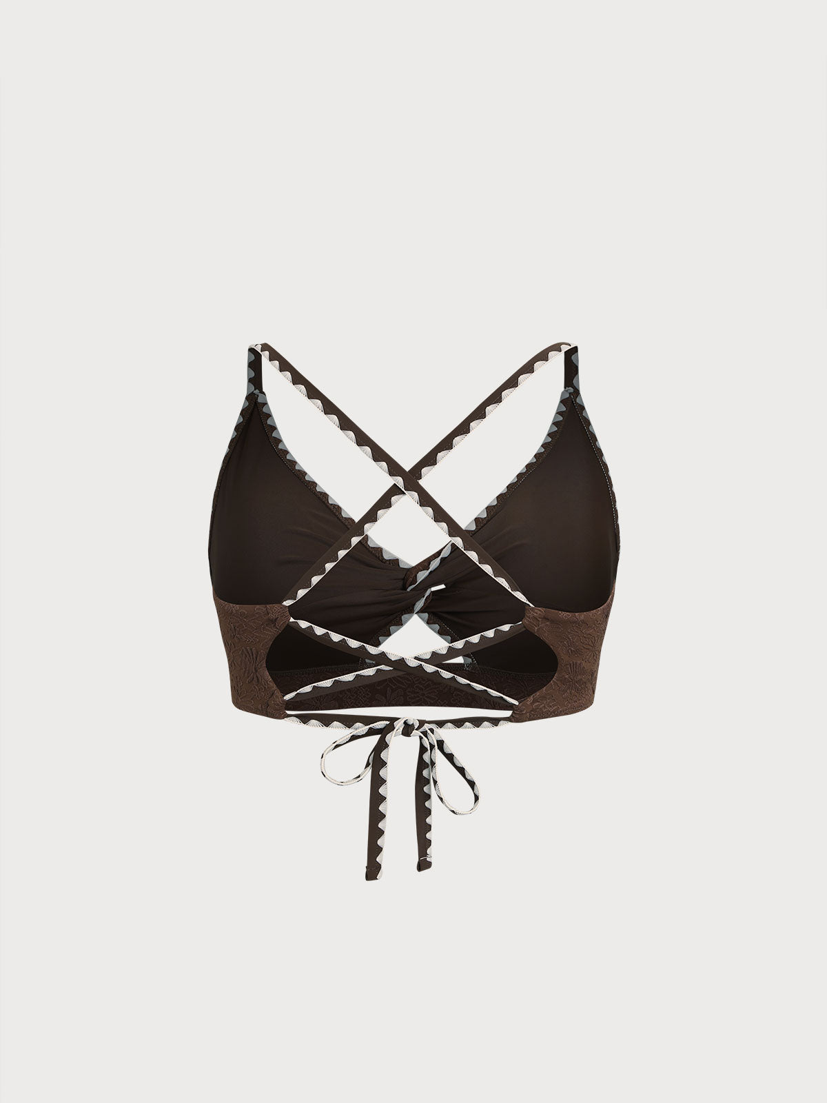 Dark Coffee Textured Cutout Plus Size Bikini Top