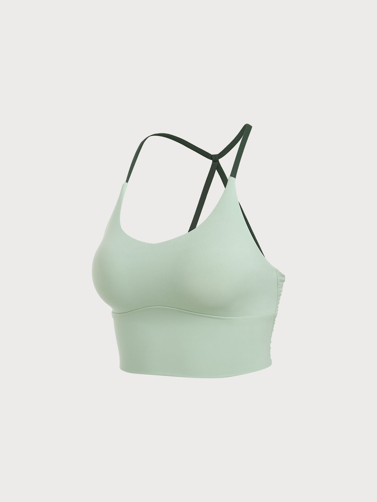 The Light Green Halter Sports Bra is made of Nylon and Spandex. Nylon is a flexible synthetic fiber, waterproof, and can take rubbing and scraping without wearing away. Spandex is lightweight and comfortable to wear, resistant to sweat, has excellent elasticity, and is durable and robust.