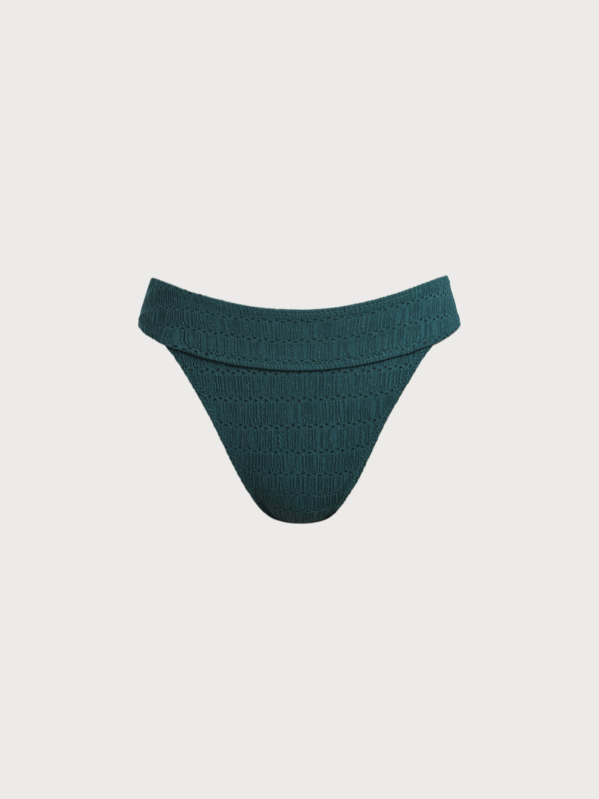 Dark Green Textured Natural Waisted Bikini Bottom