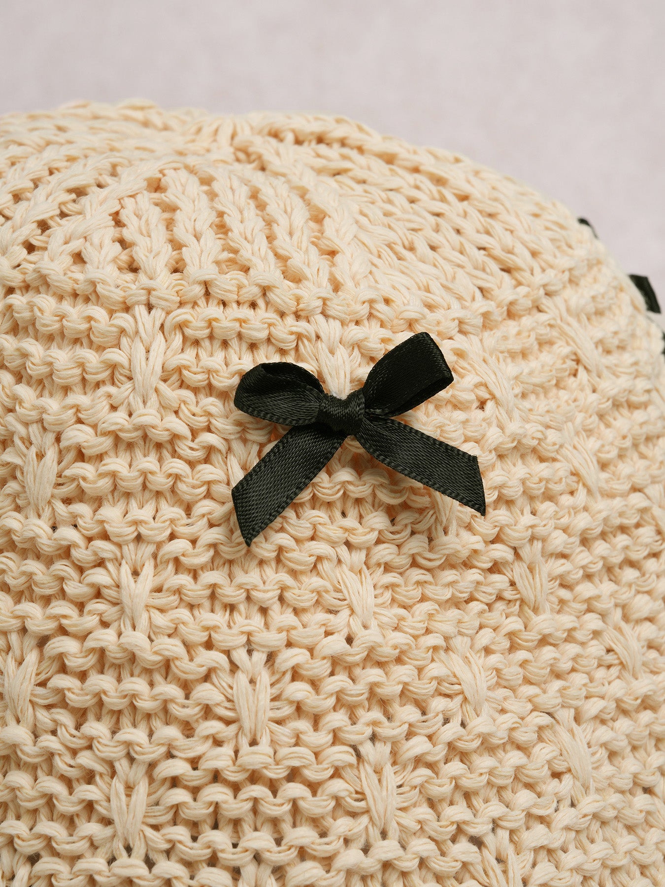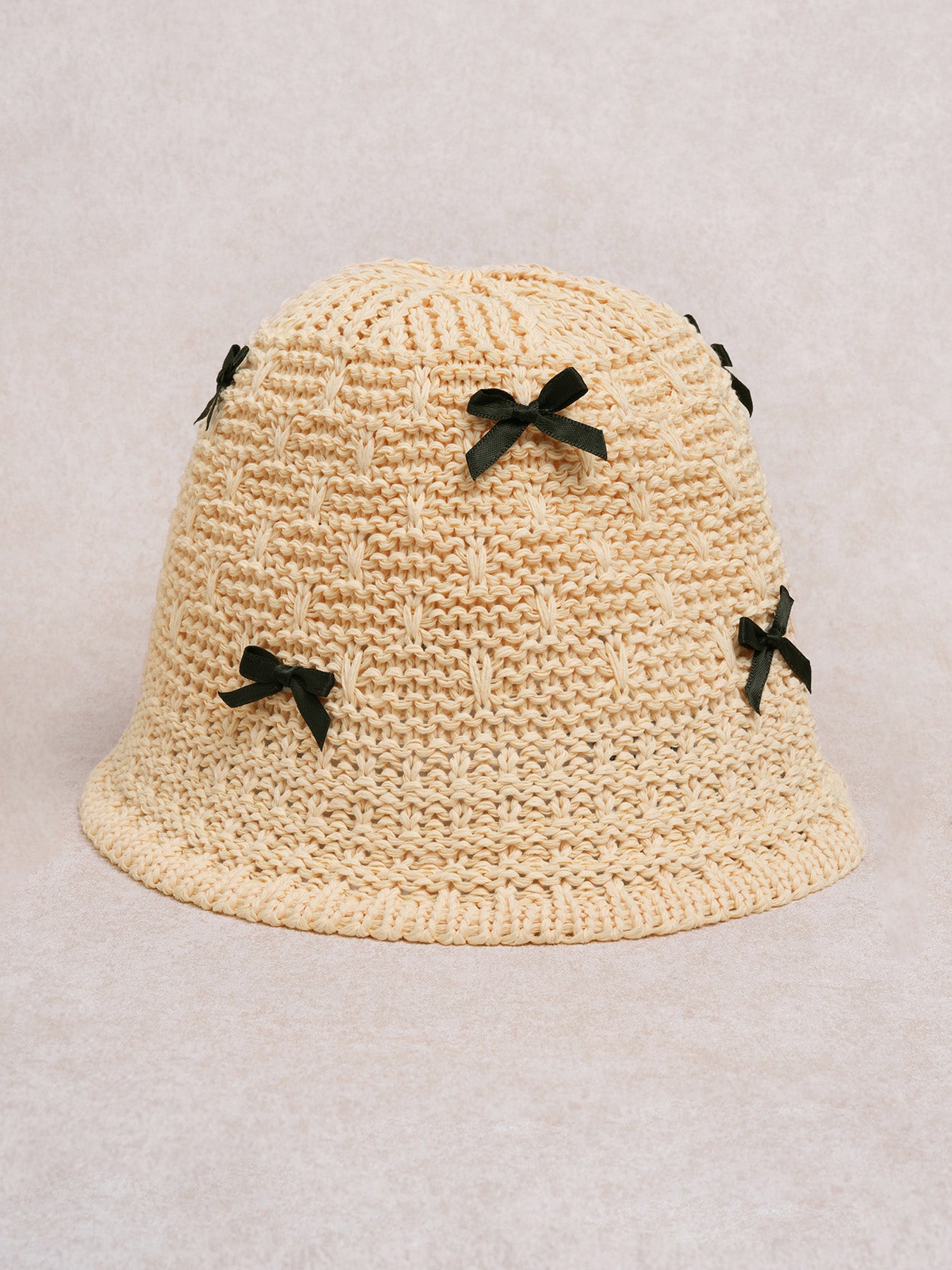 Beige Knit Bow Bucket Hat