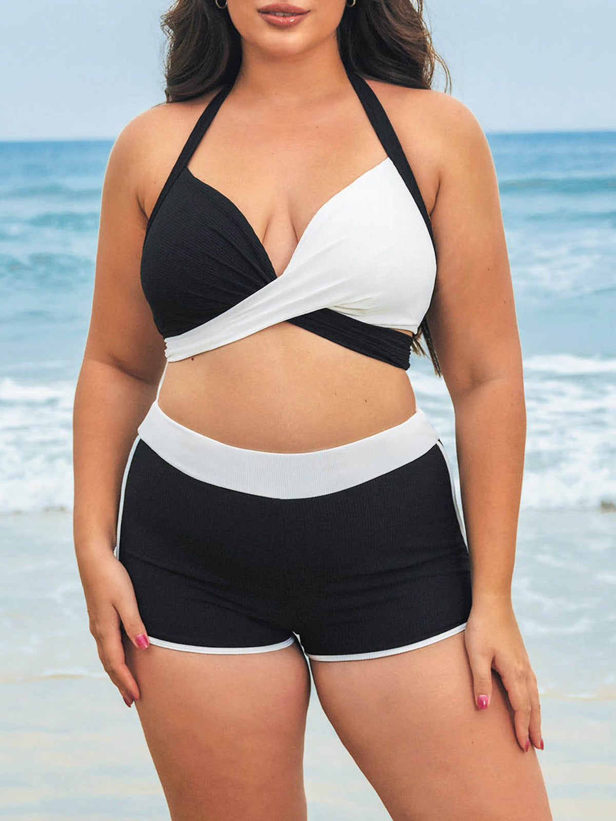 Black Contrast Full Coverage Plus Size Bikini Bottom