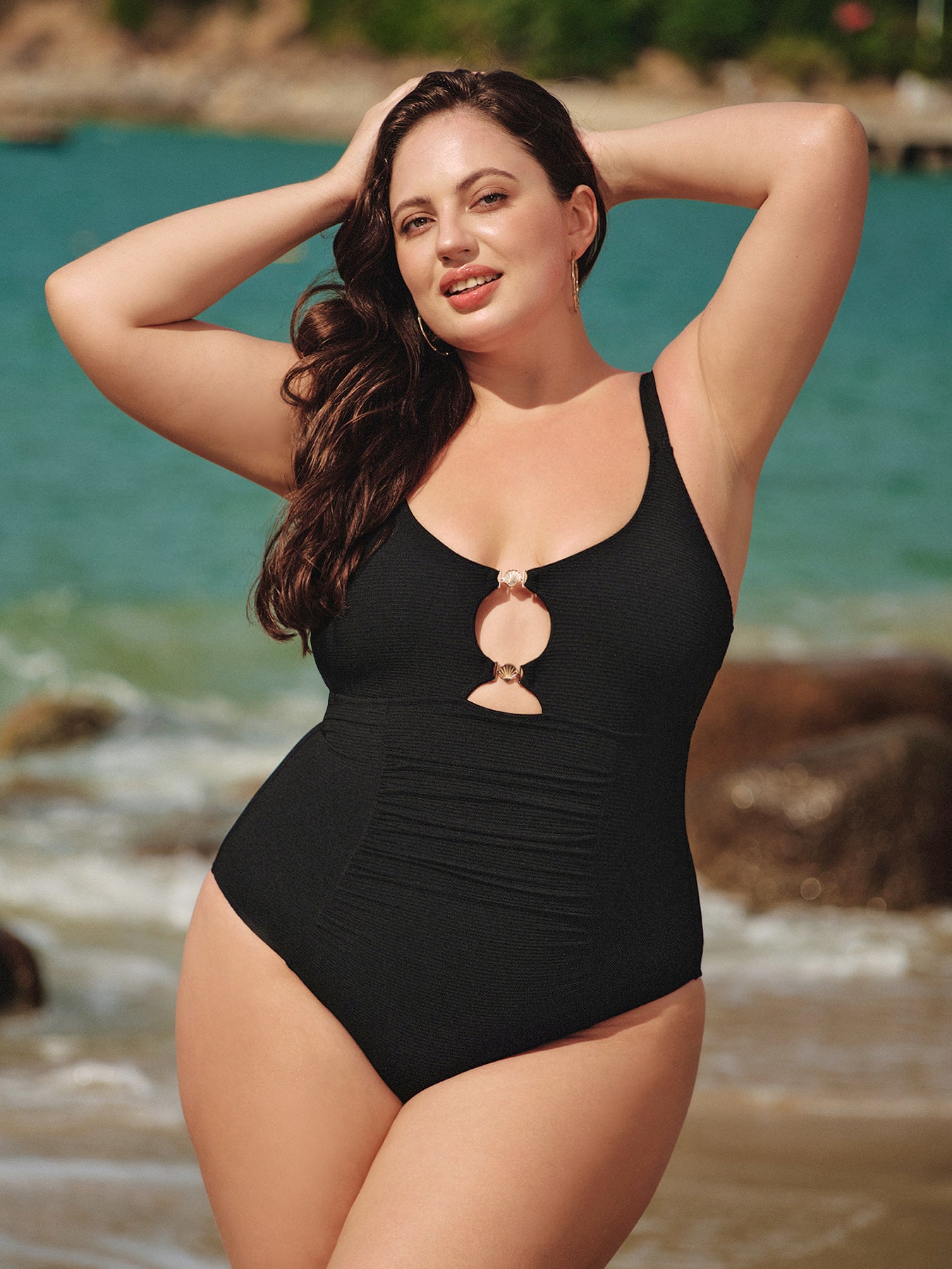 Black Cutout Gold-Accented Plus Size One-Piece Swimsuit