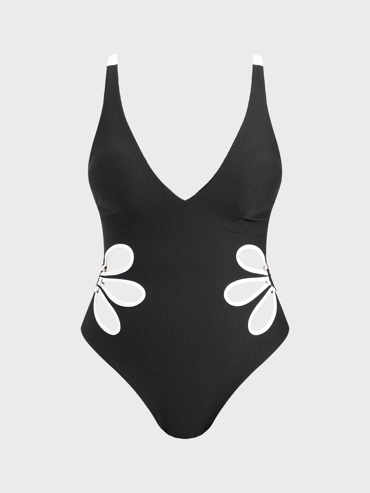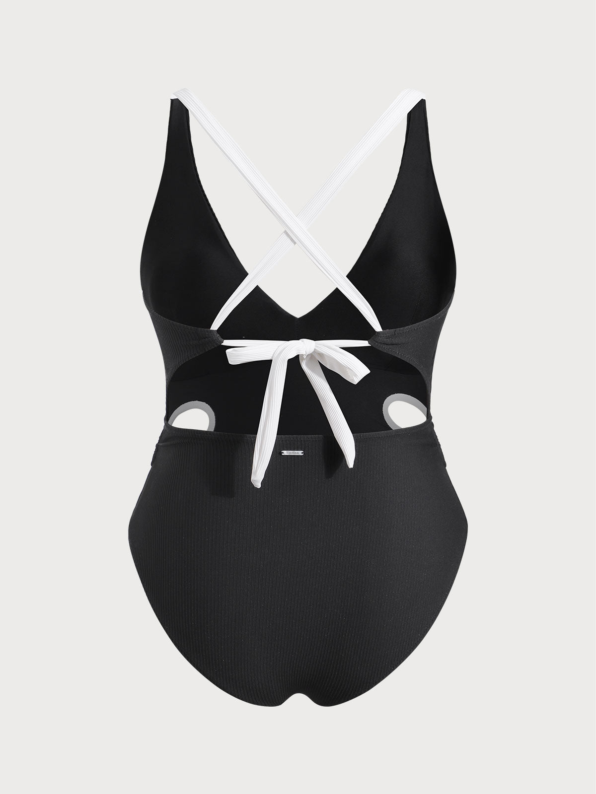 Schwarzer Badeanzug mit V-Ausschnitt in Übergröße