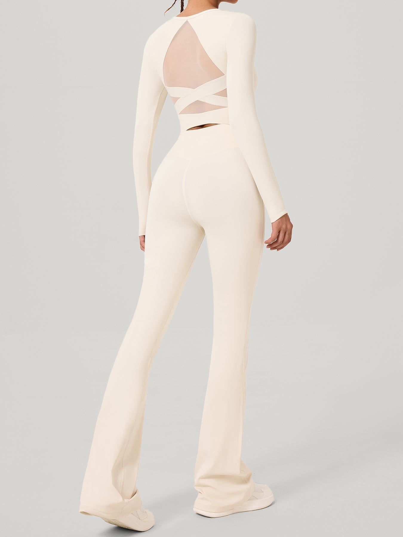 Cream Cross Mesh Back Long Sleeve Top--Light Support