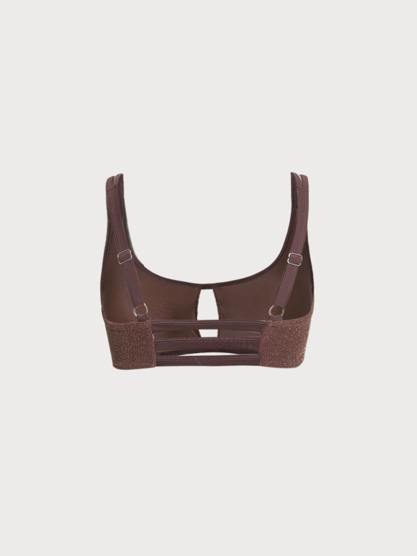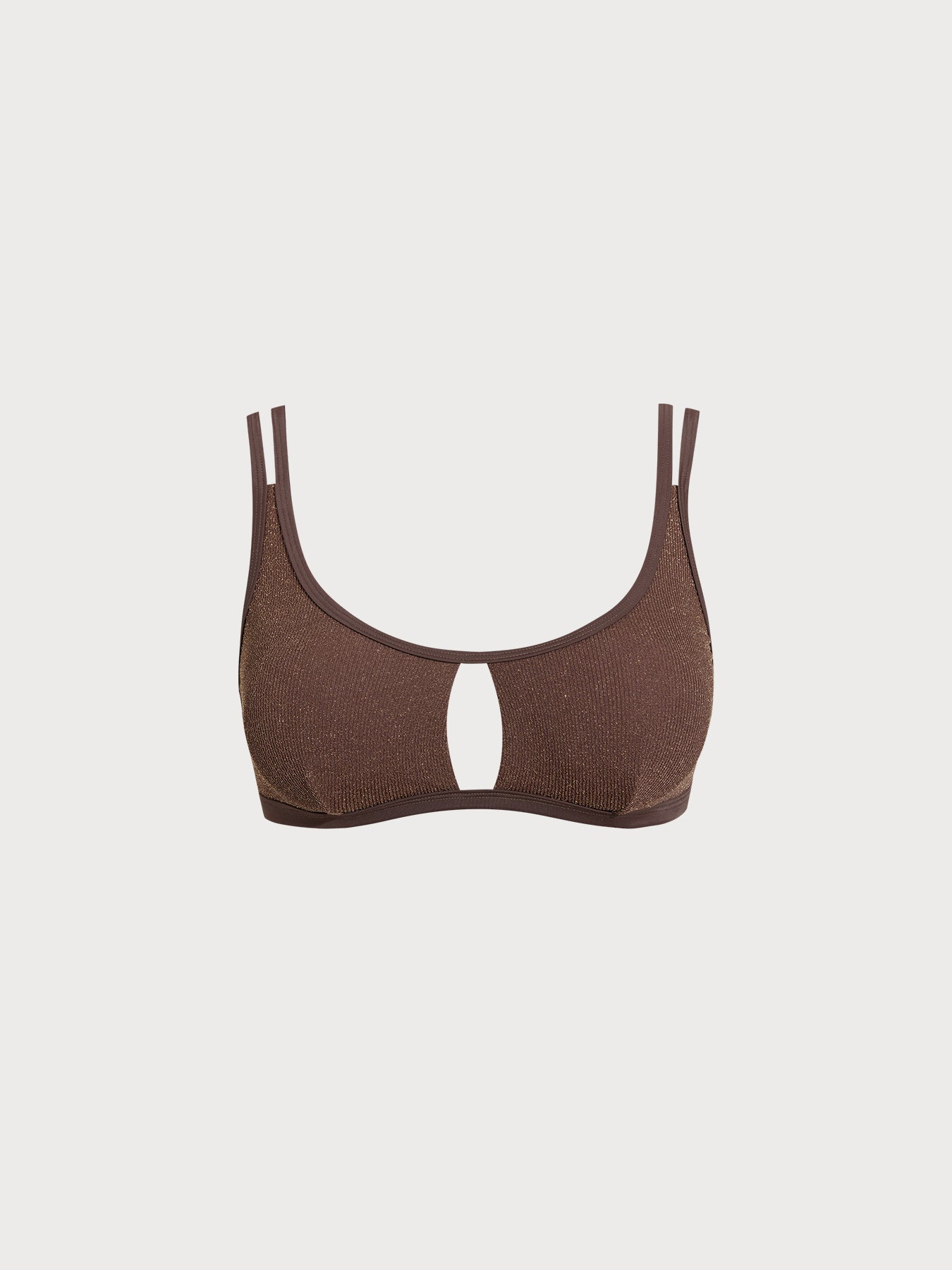 Dark Coffee Lurex Cutout Plus Size Bikini Top