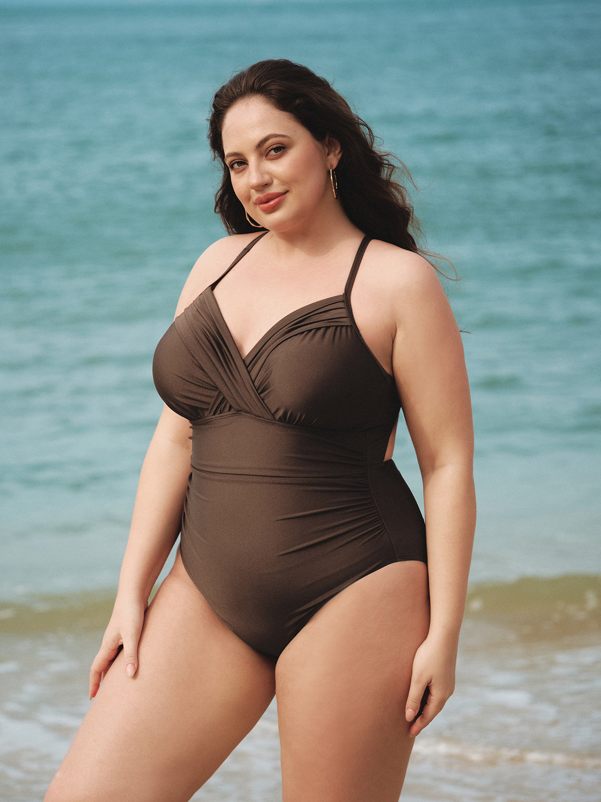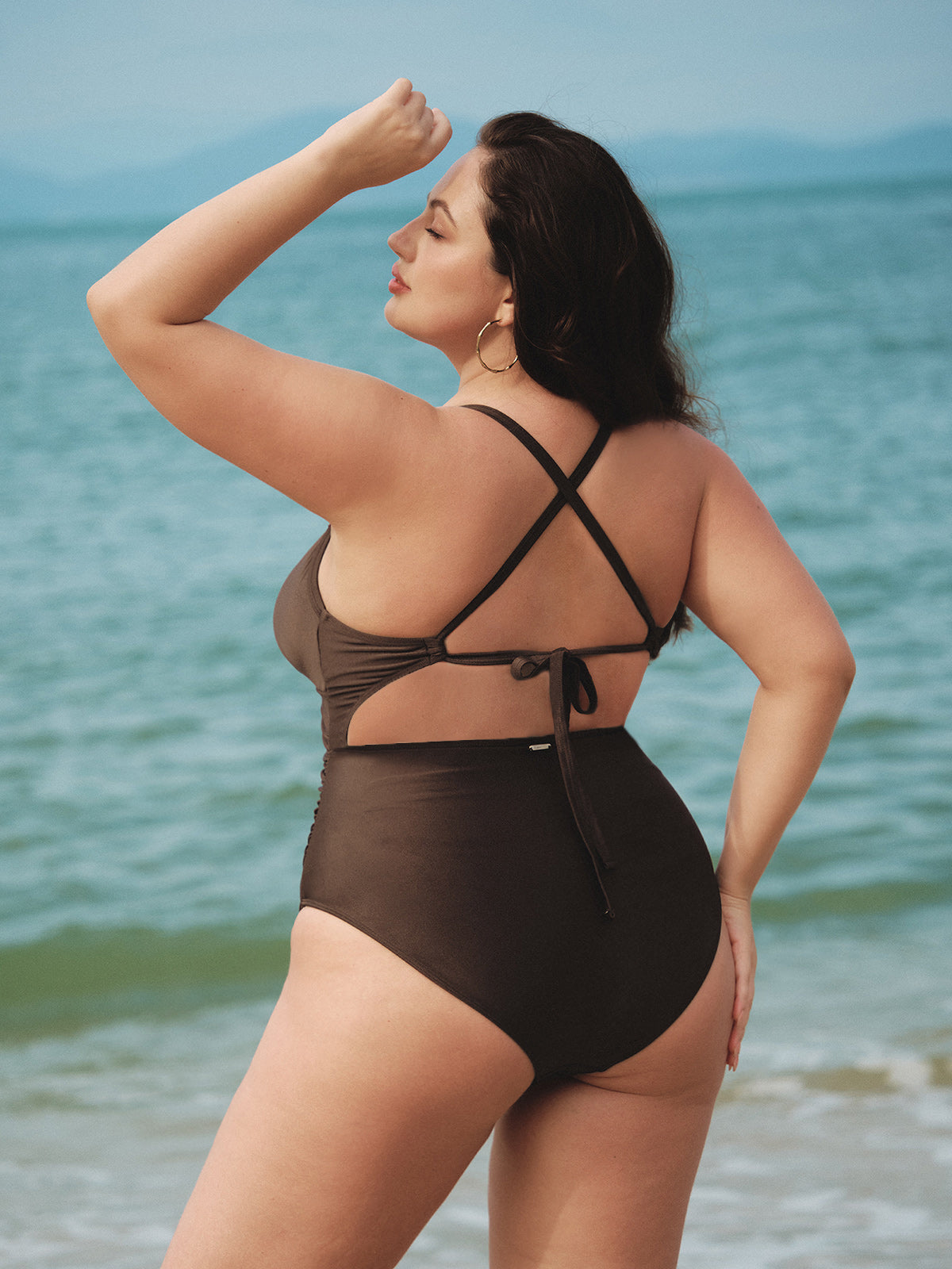 Dark Coffee Twist Plus Size One-Piece Swimsuit