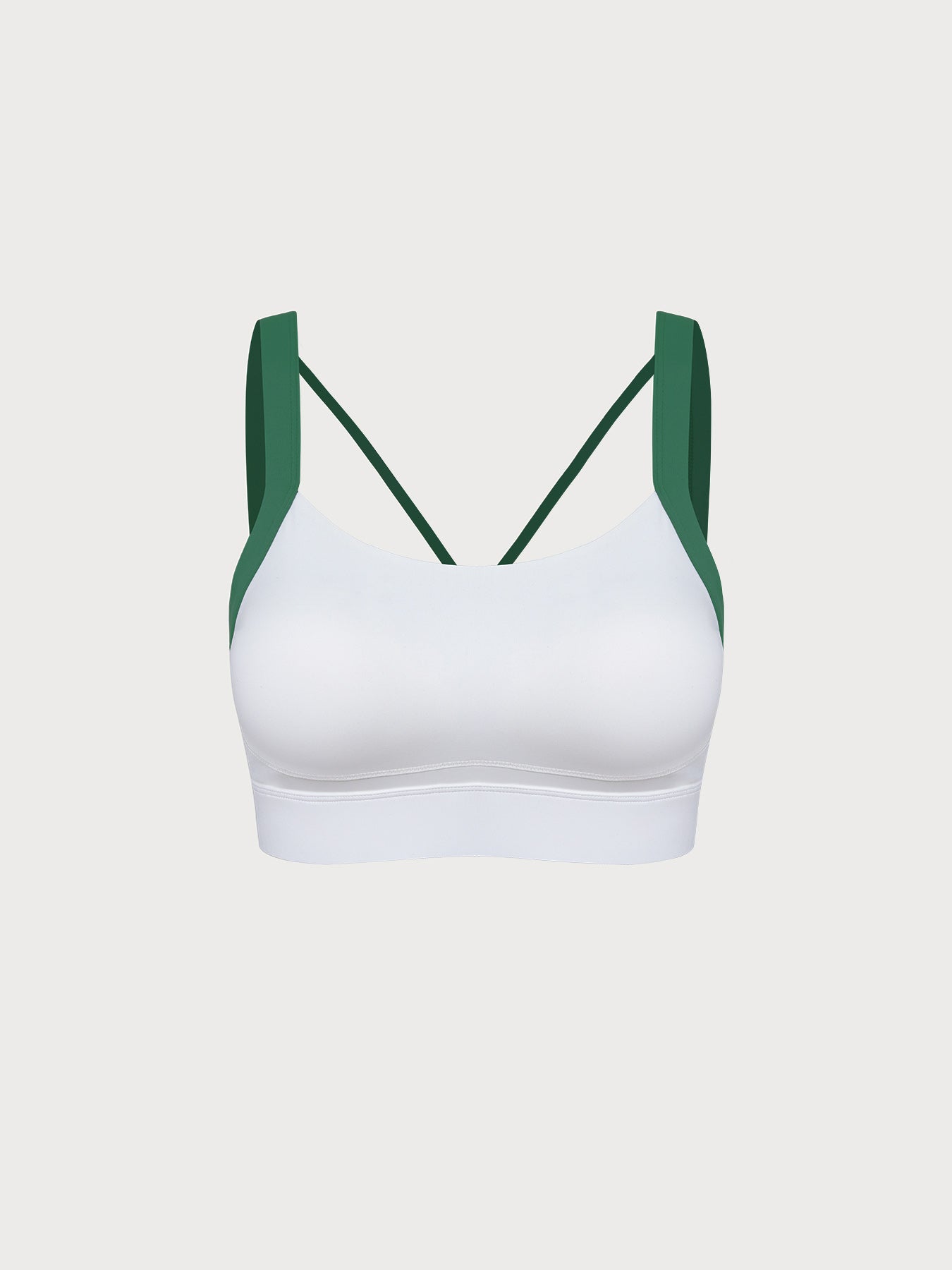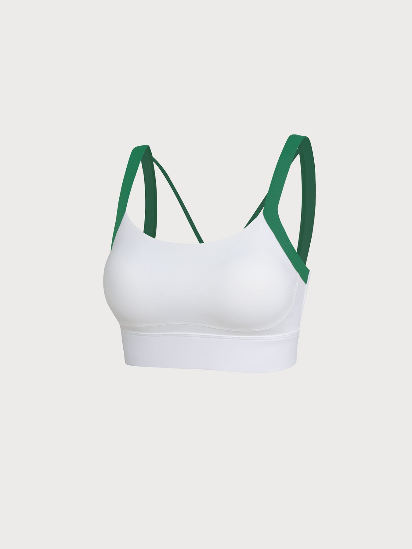 The Sports Bra features GRS-certified recycled polyamide and spandex. By using these recycled materials, we lessen our impact on natural resources and minimize energy and chemical use, all while delivering top-notch performance and durability.