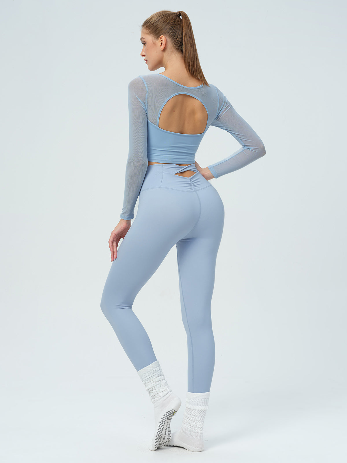 The Light Blue Cut Out Leggings 24" combine style and performance, with a sleek cut-out design and flattering high waist. Available in inclusive sizes, these leggings are wear-tested for the perfect fit. The breathable, moisture-wicking fabric offers comfort during workouts, lounging, or running errands. The 24" length provides a versatile, streamlined silhouette.