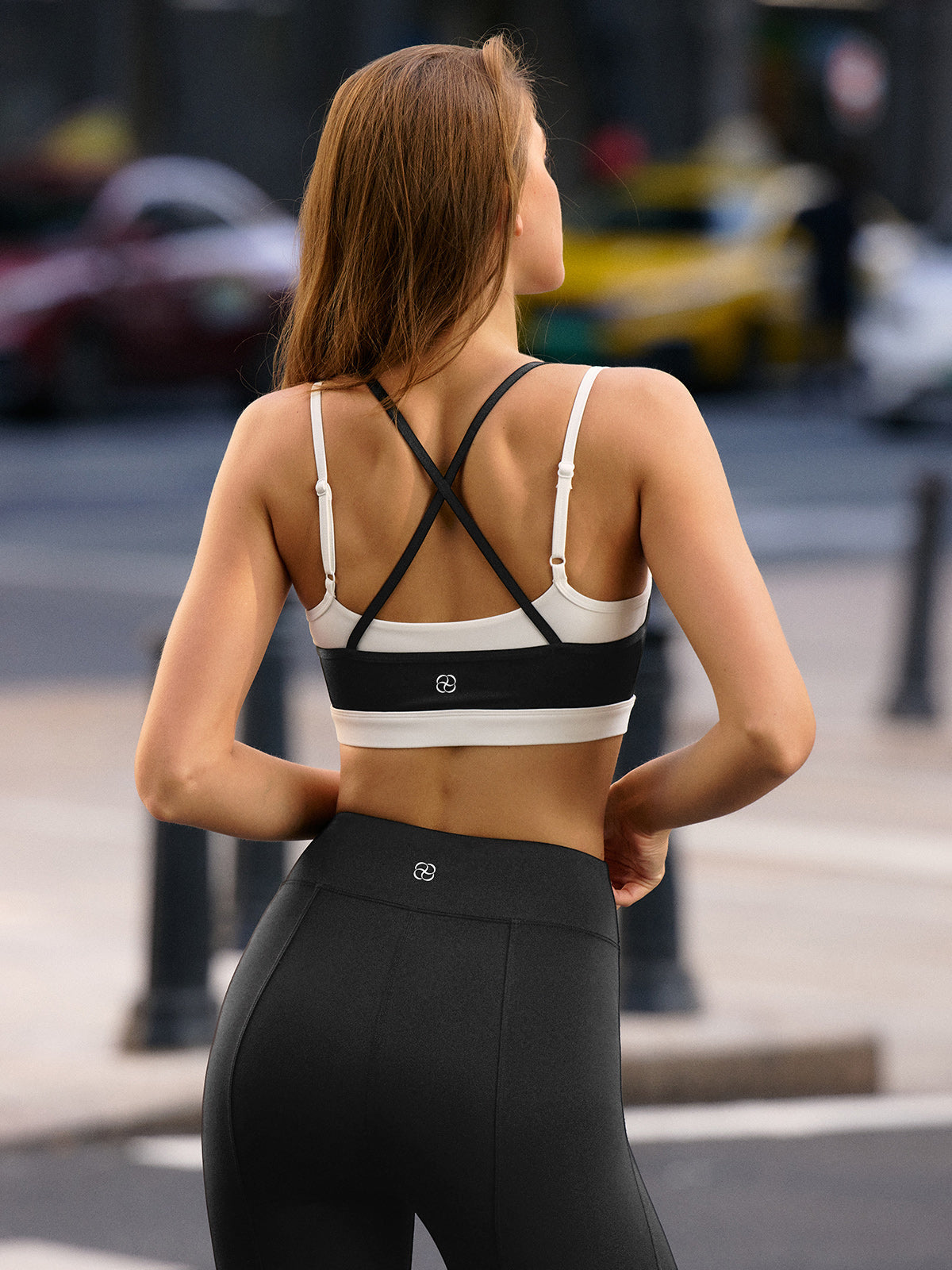 The Black Contrast Bralette Sports Bra features GRS-certified recycled polyamide and spandex. By using these recycled materials, we lessen our impact on natural resources and minimize energy and chemical use, all while delivering top-notch performance and durability.
