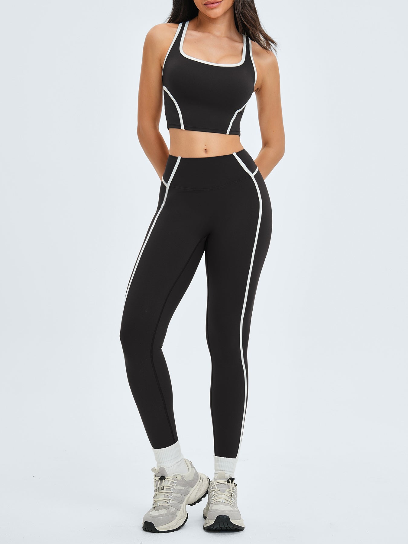 Black High-Waist Side-Stripe Leggings 27"