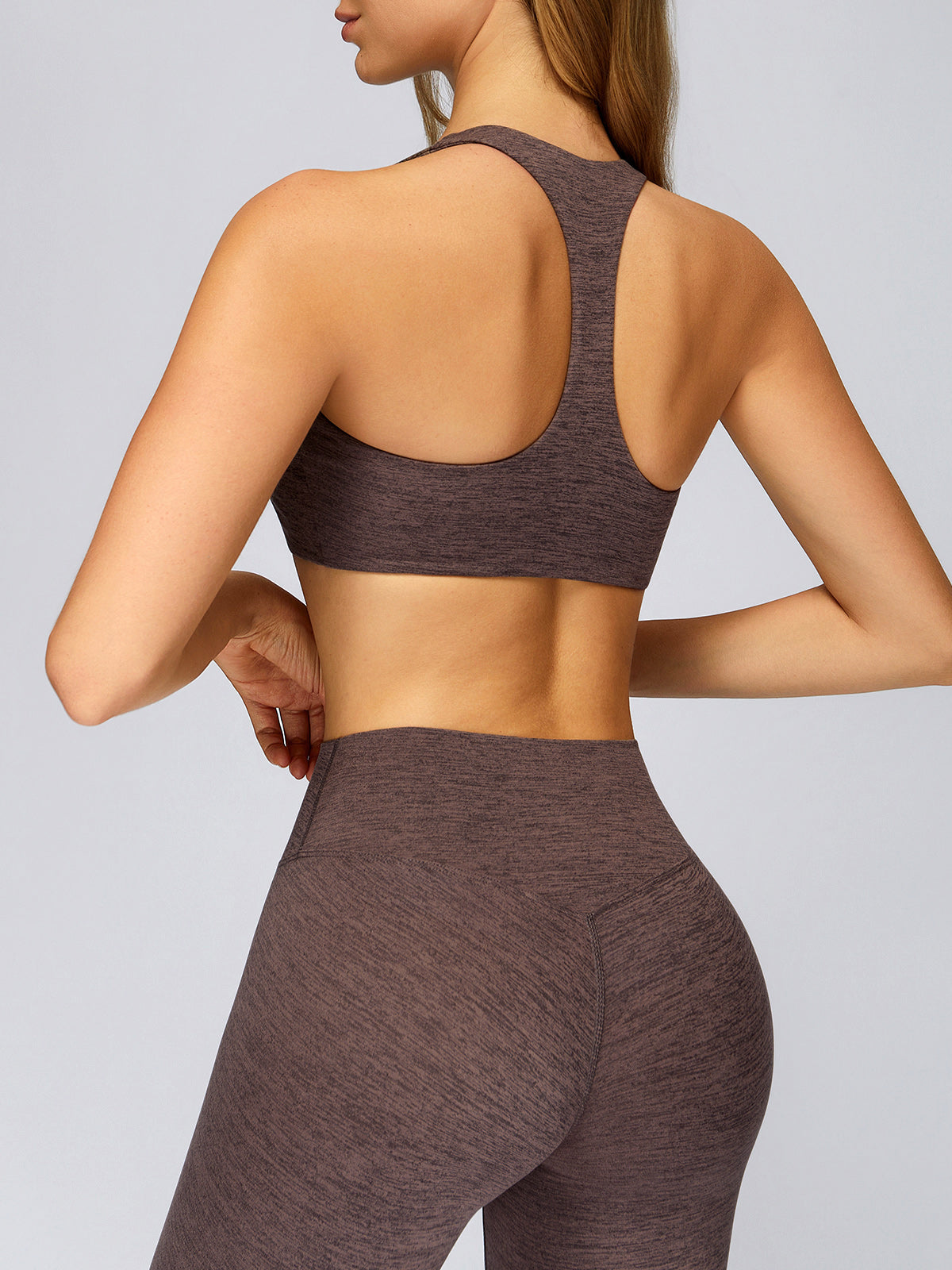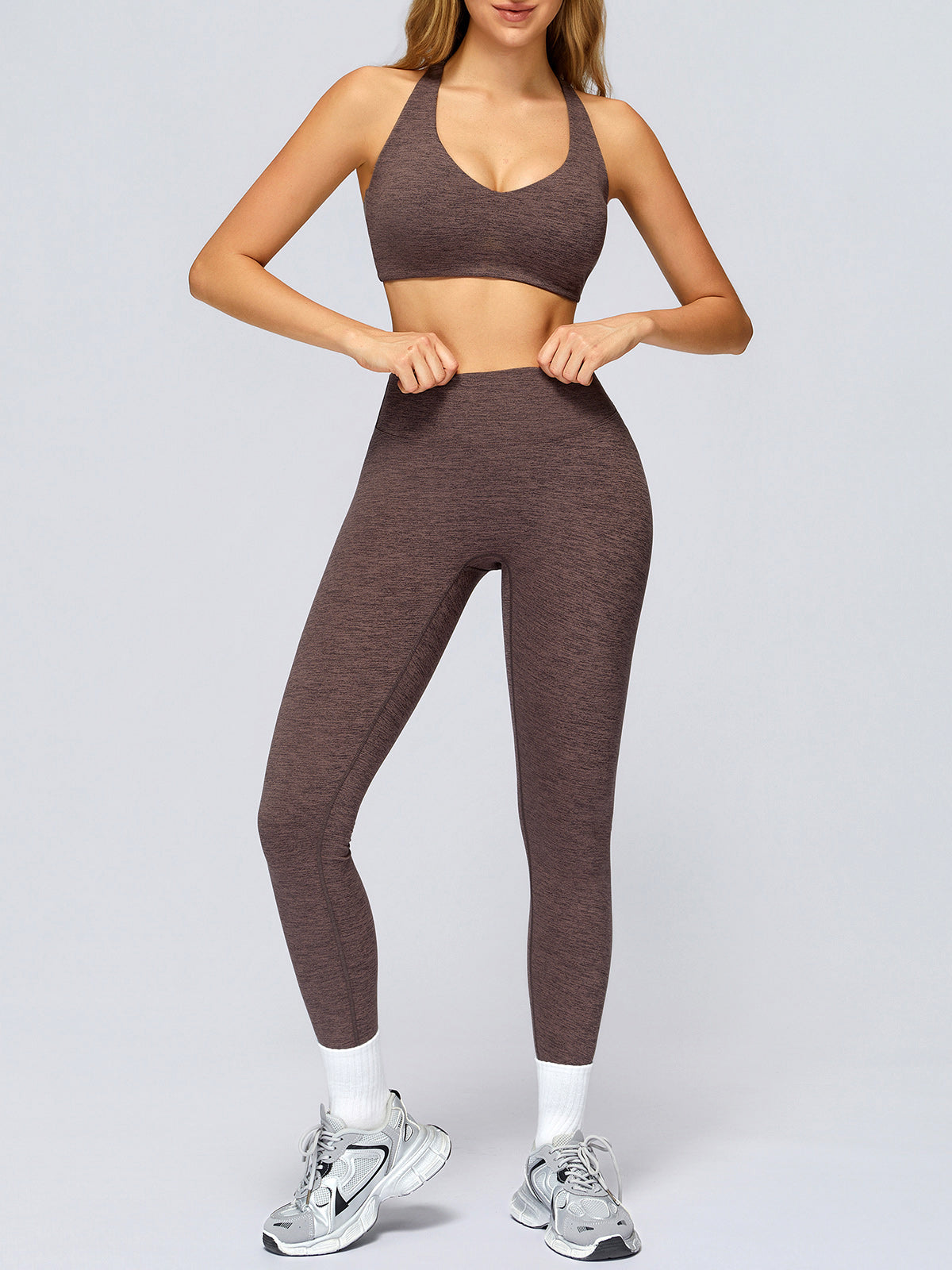 Coffee V Neck I-back Sports Bra