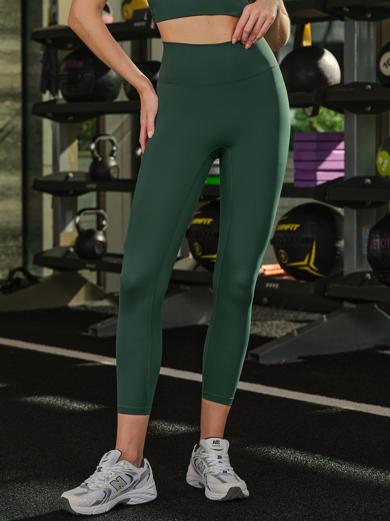 The Dark Green Cut Out Leggings 24" combine style and performance, with a sleek cut-out design and flattering high waist. Available in inclusive sizes, these leggings are wear-tested for the perfect fit. The breathable, moisture-wicking fabric offers comfort during workouts, lounging, or running errands. The 24" length provides a versatile, streamlined silhouette.
