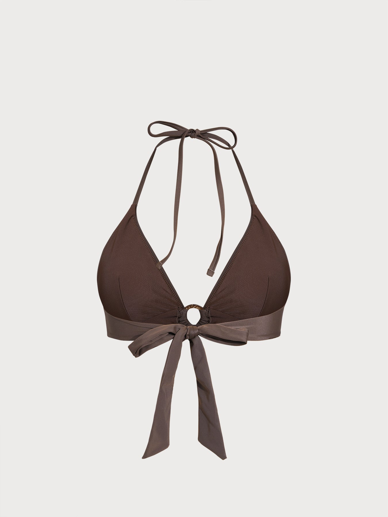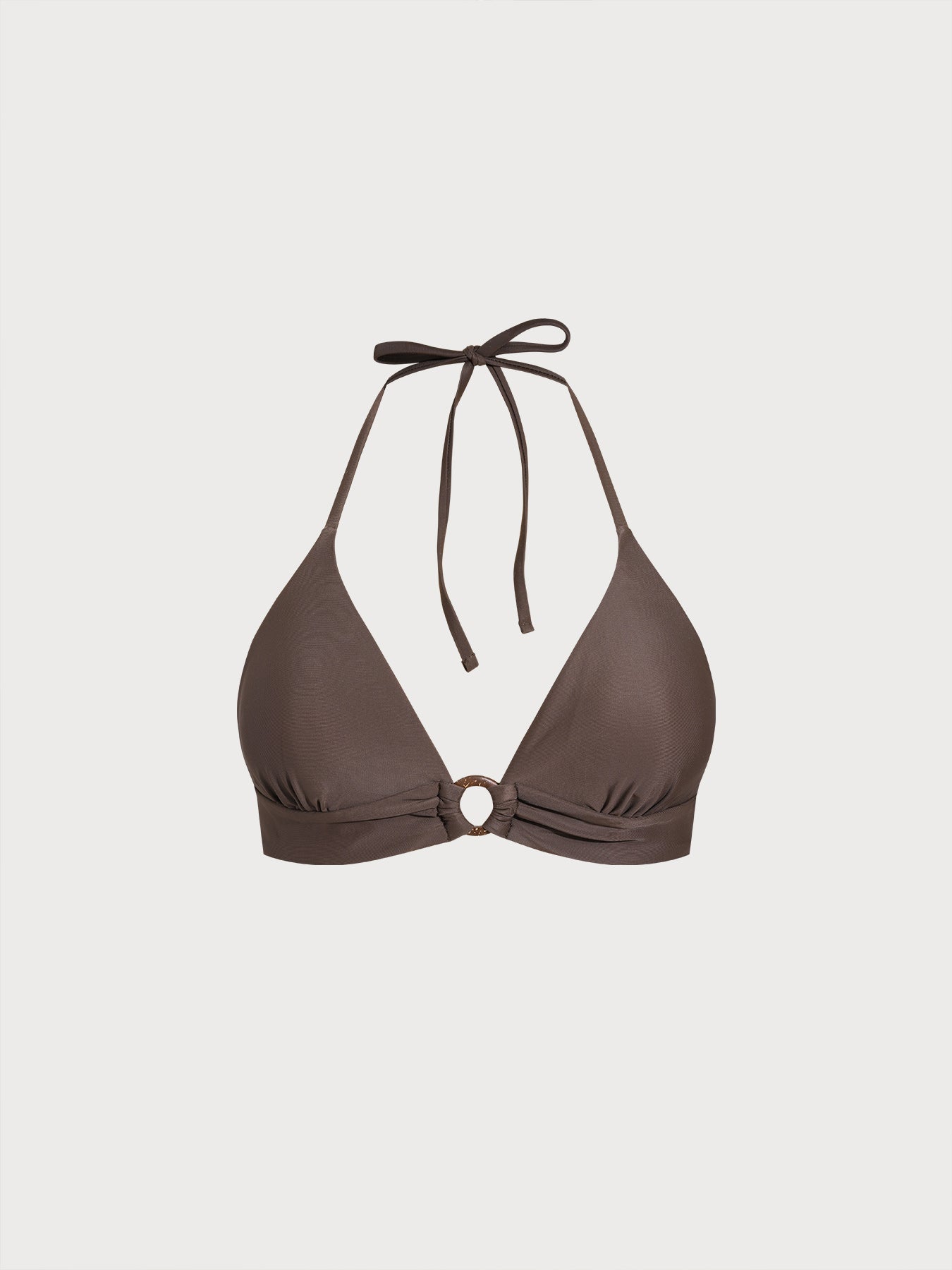 ECONYL® Dark Coffee O-Ring Halter Bikini Top
