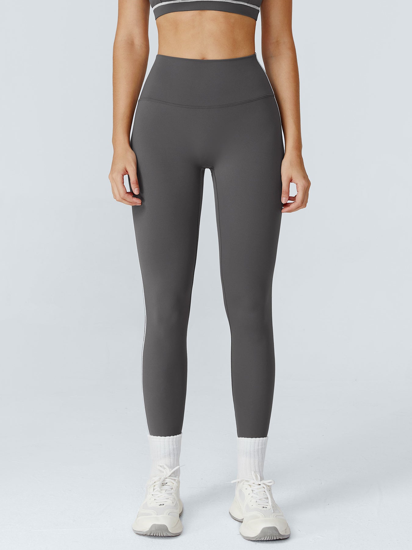Gray High-Waist Side-Stripe Leggings 25"