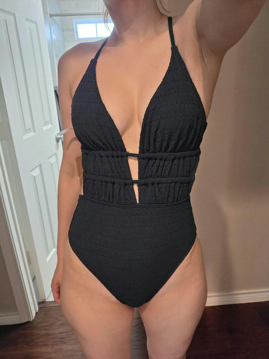 Maillot de bain une pièce vert foncé texturé à décolleté plongeant