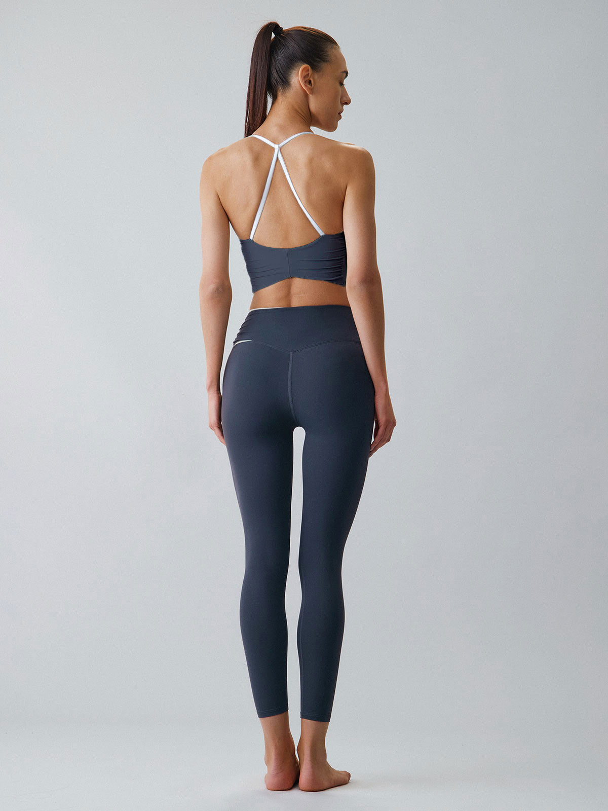 Le soutien-gorge de sport dos nu bleu marine est fabriqué en nylon et élasthanne. Le nylon est une fibre synthétique souple et imperméable qui résiste aux frottements et aux éraflures sans s'user. L'élasthanne est léger et confortable, résistant à la transpiration, possède une excellente élasticité, est durable et robuste.