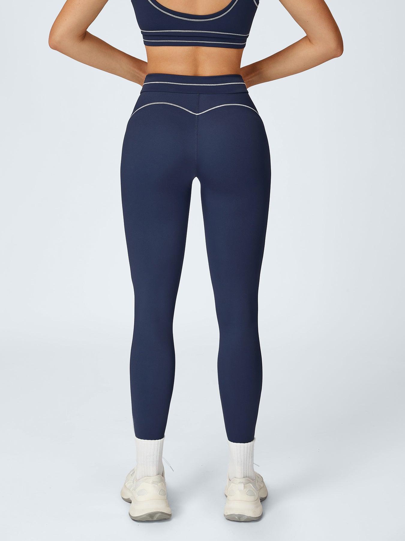 Navy High-Waist Contrast-Line Leggings 26"
