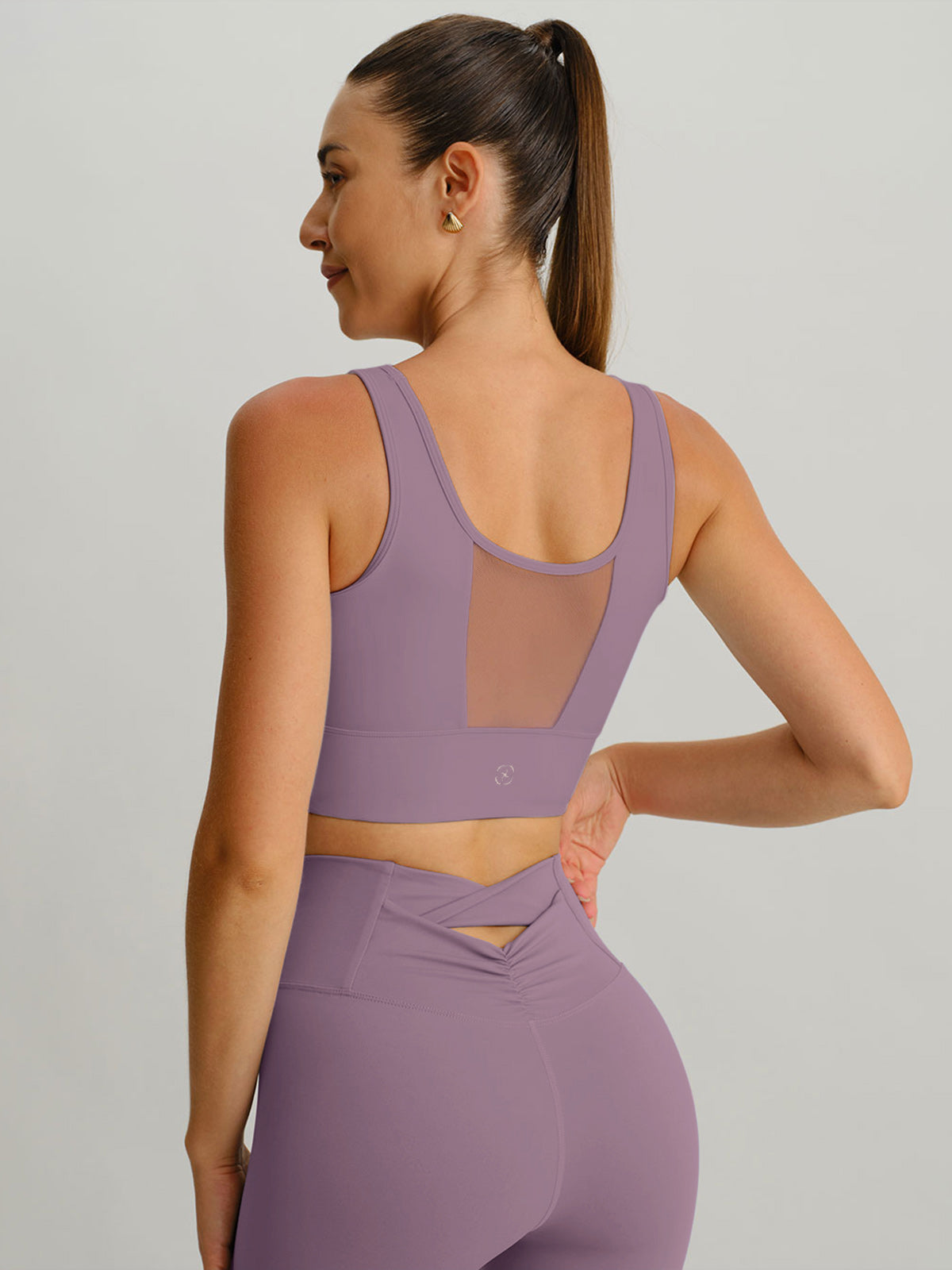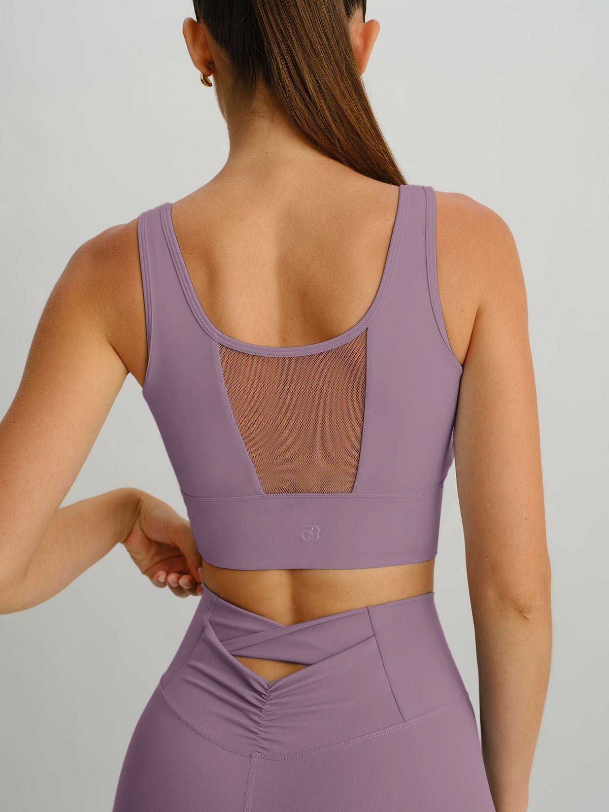 Purple Grey Mesh Cross-Front Tank Top