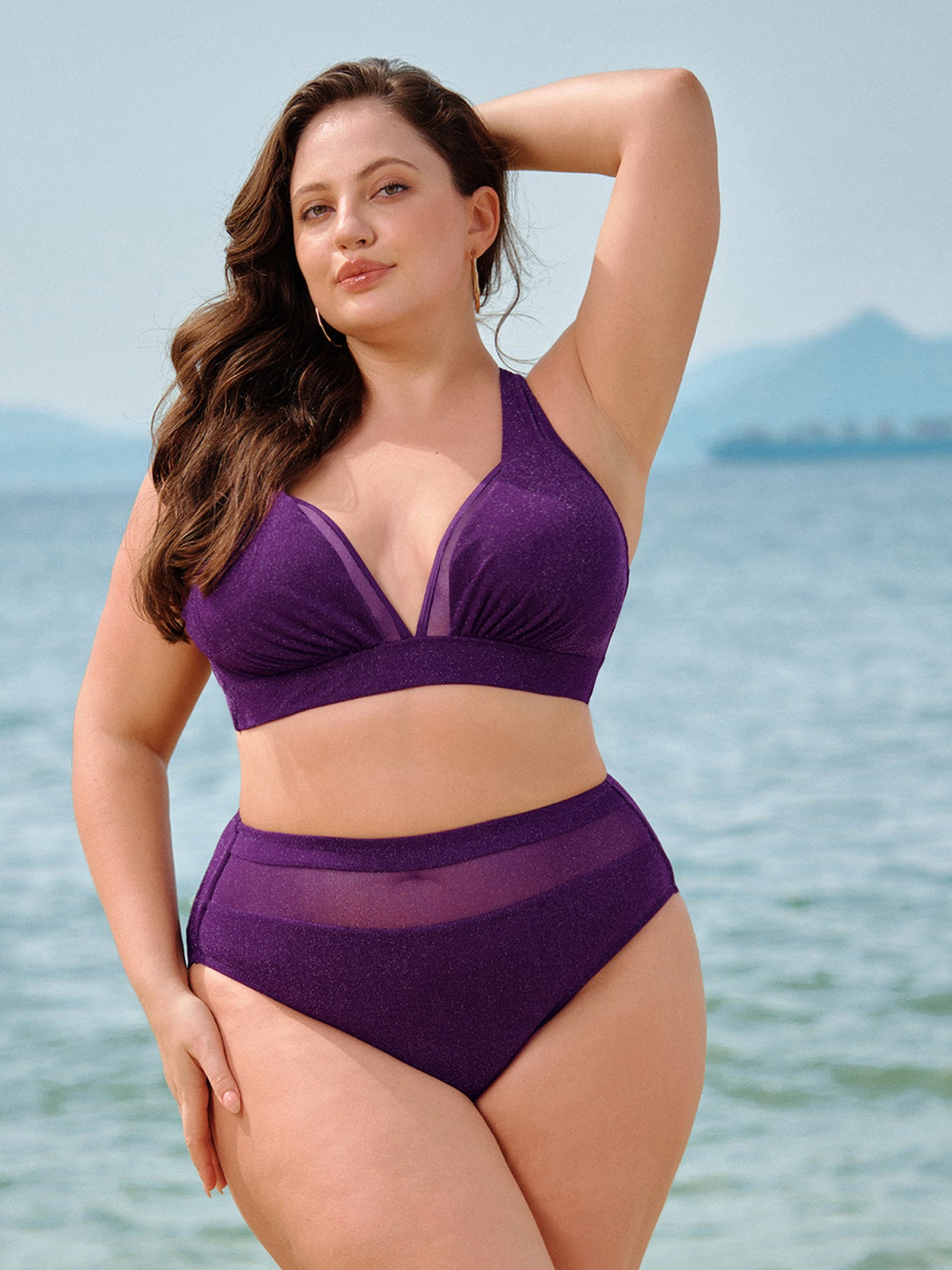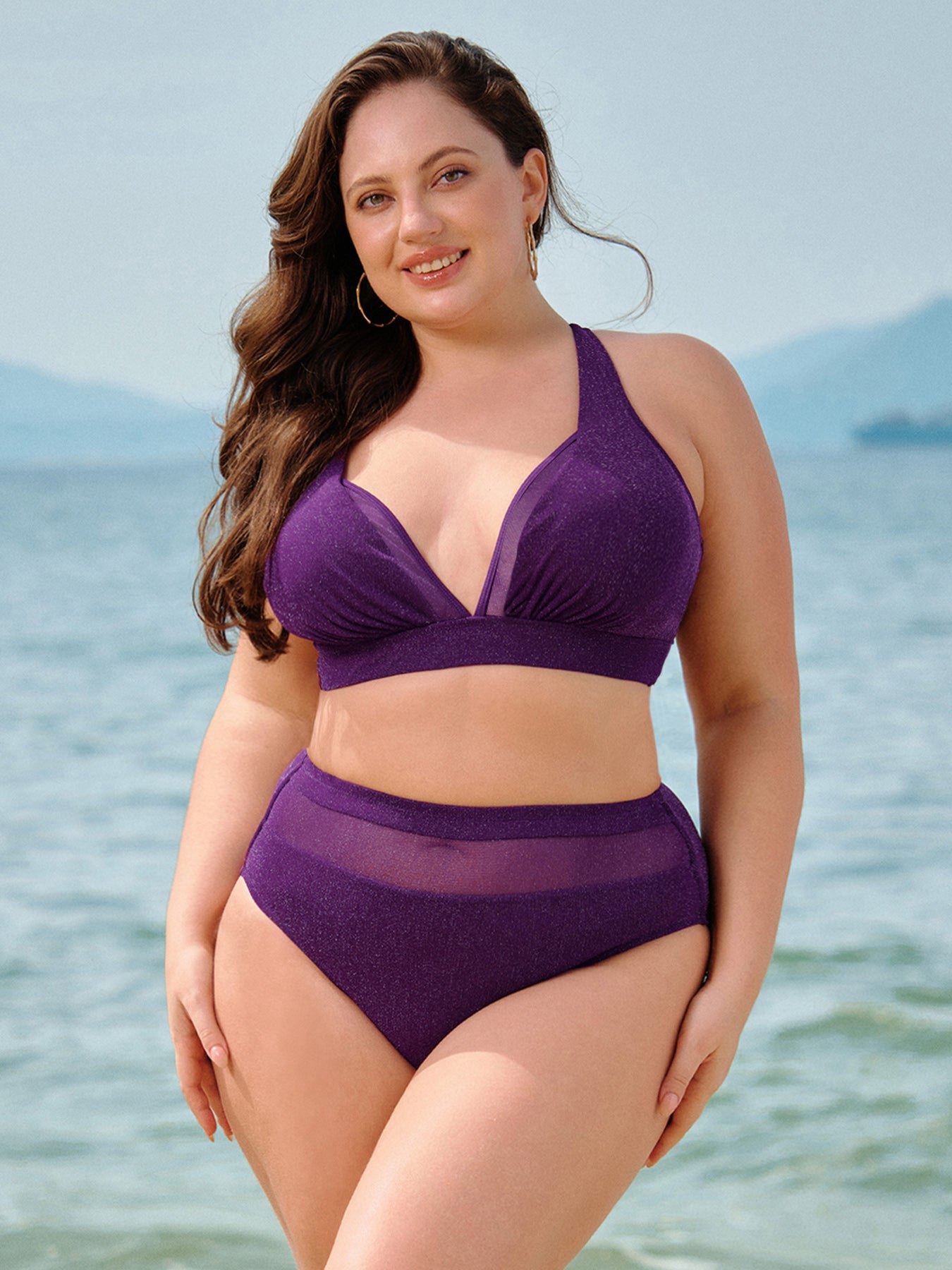 Purple Mesh Plus Size Bikini Bottom