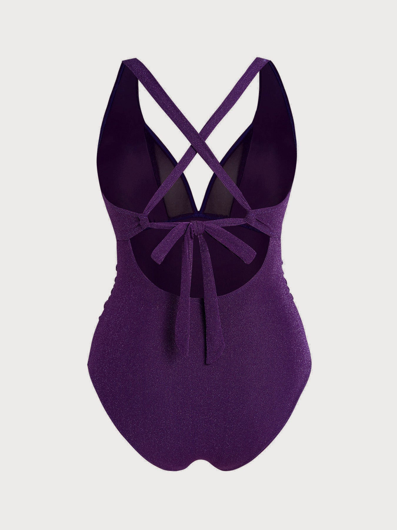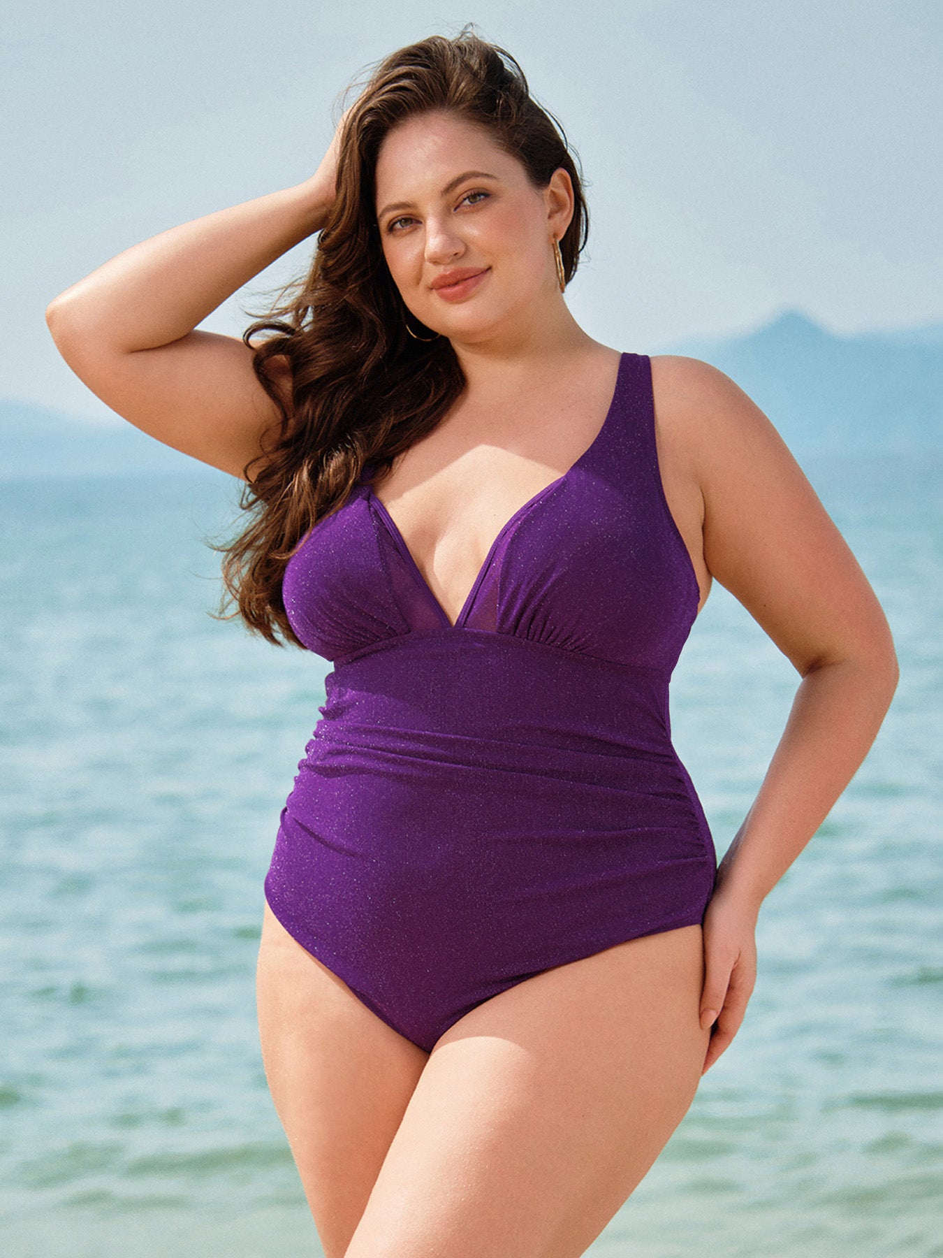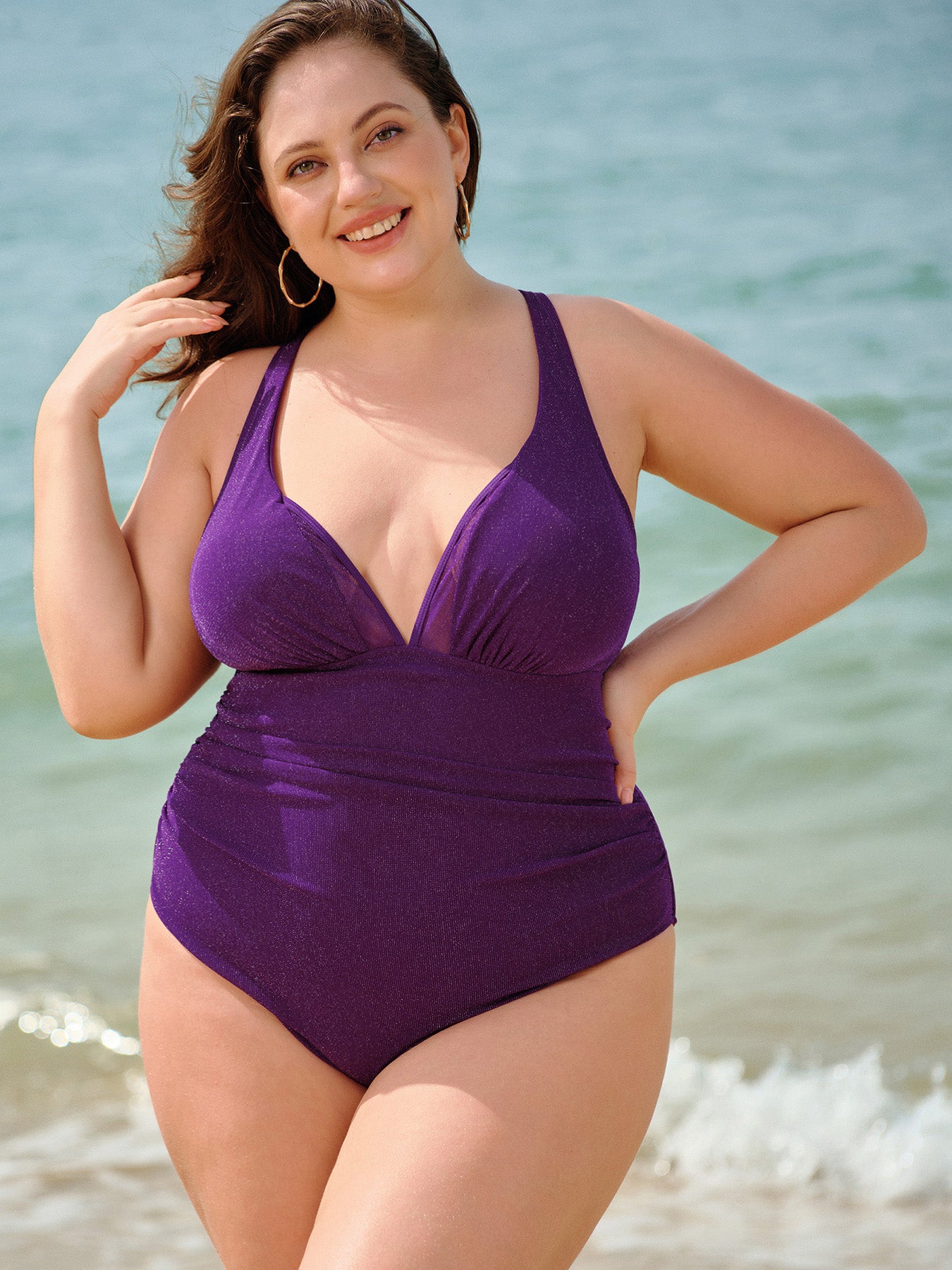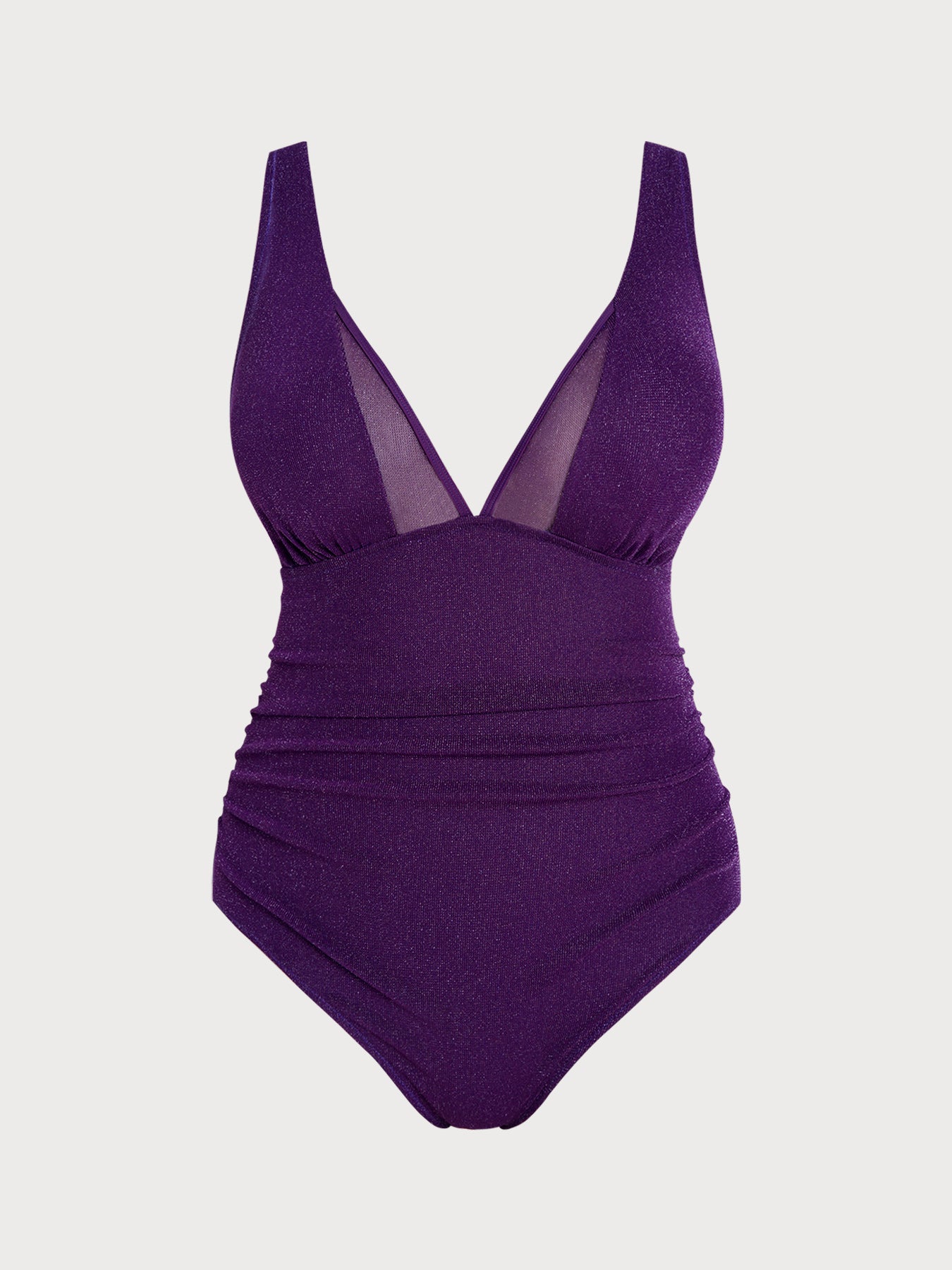 Purple V-Neck Ruched Plus Size One-Piece Swimsuit