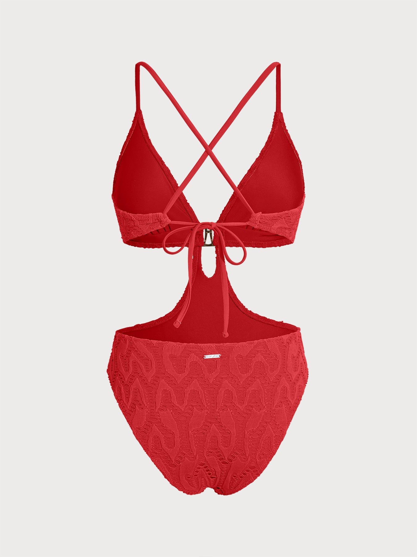 Red Plunge Neck Cutout One-Piece Swimsuit