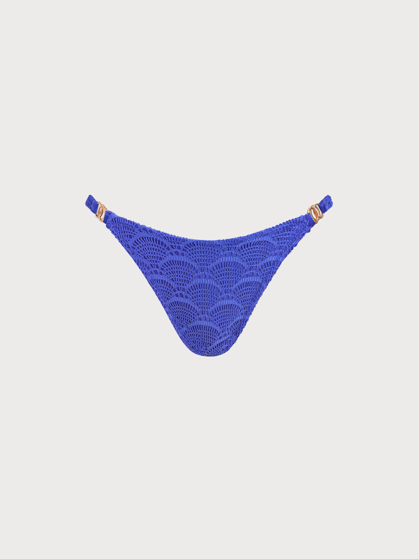 Royal Blue Textured Gold-Accented Bikini Bottom