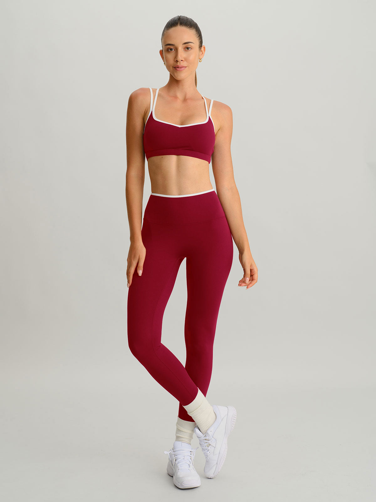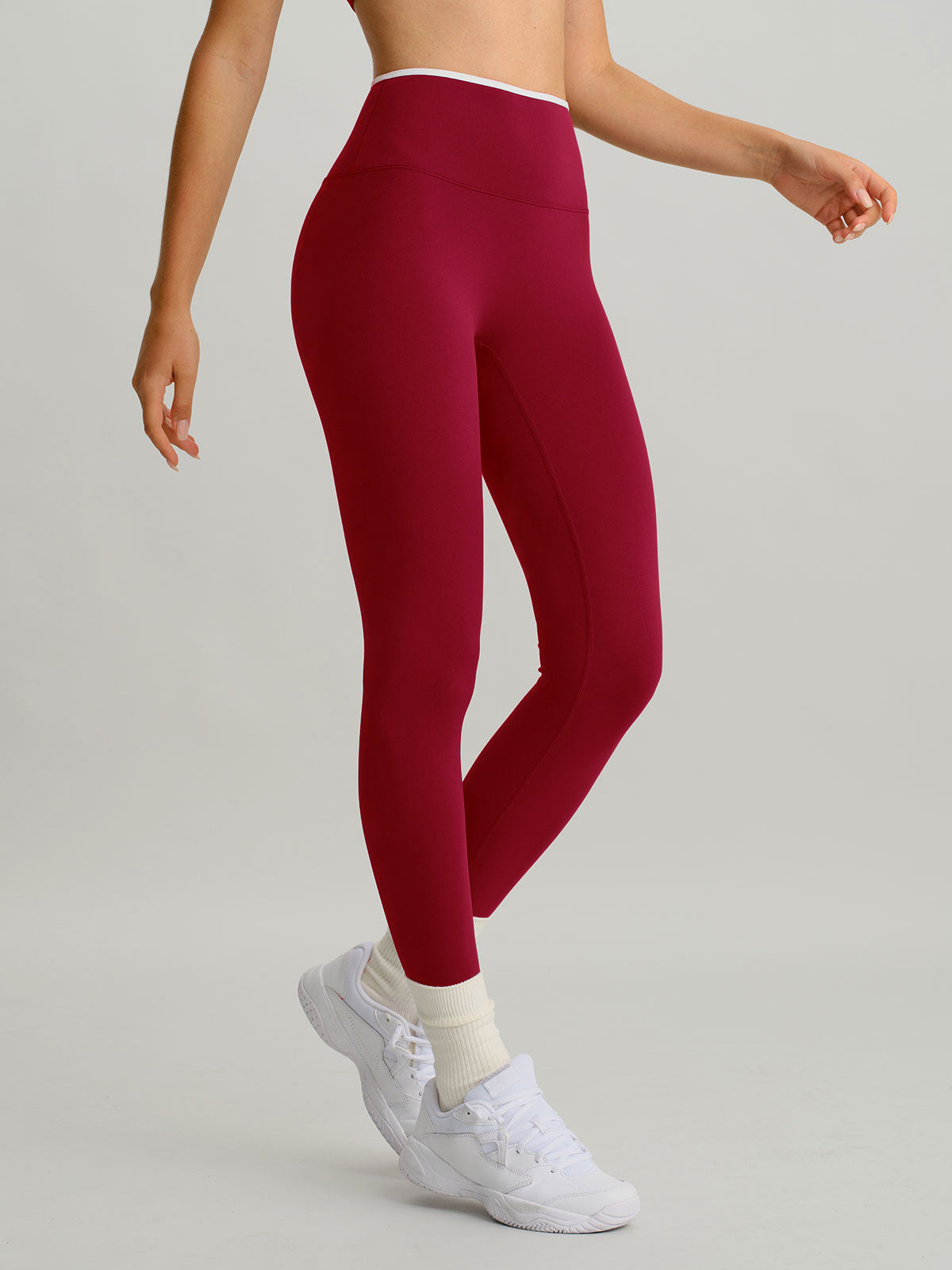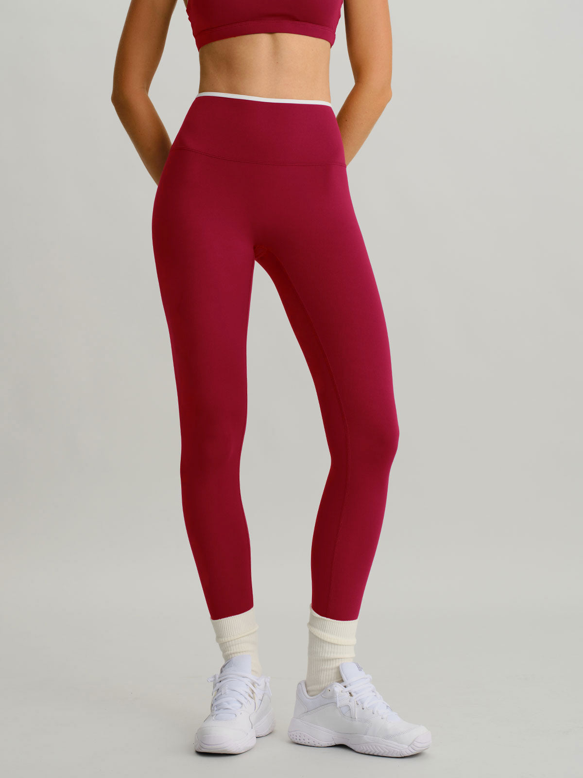 Wine Red High-Waisted Contrast Trim Leggings 25"
