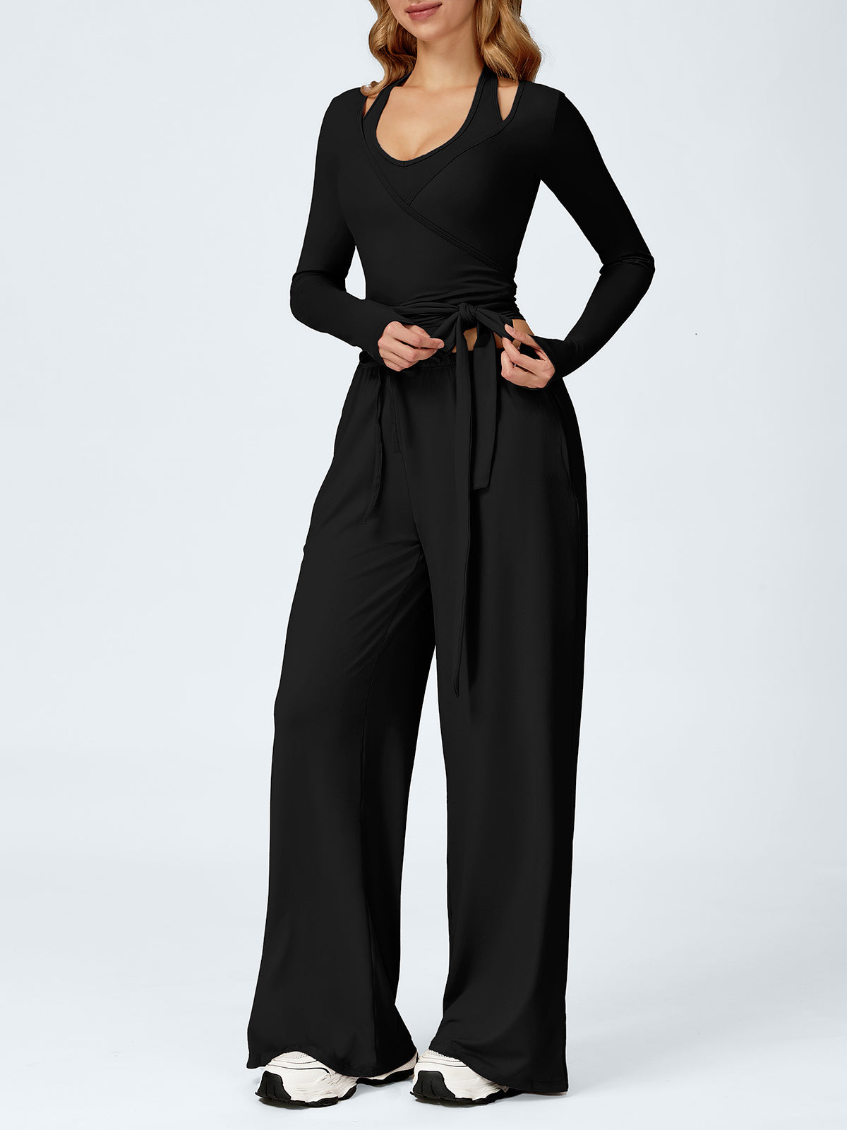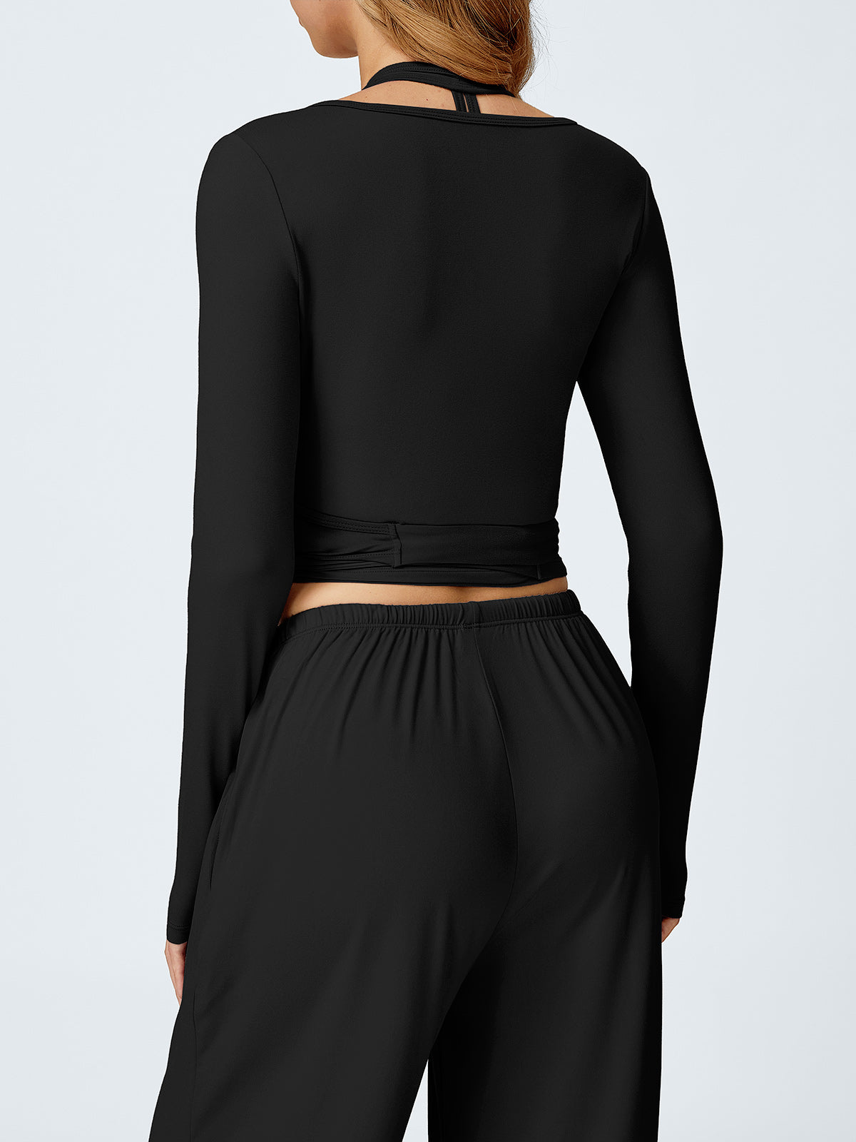 Black Long Sleeve Strappy Yoga Wrap Jacket