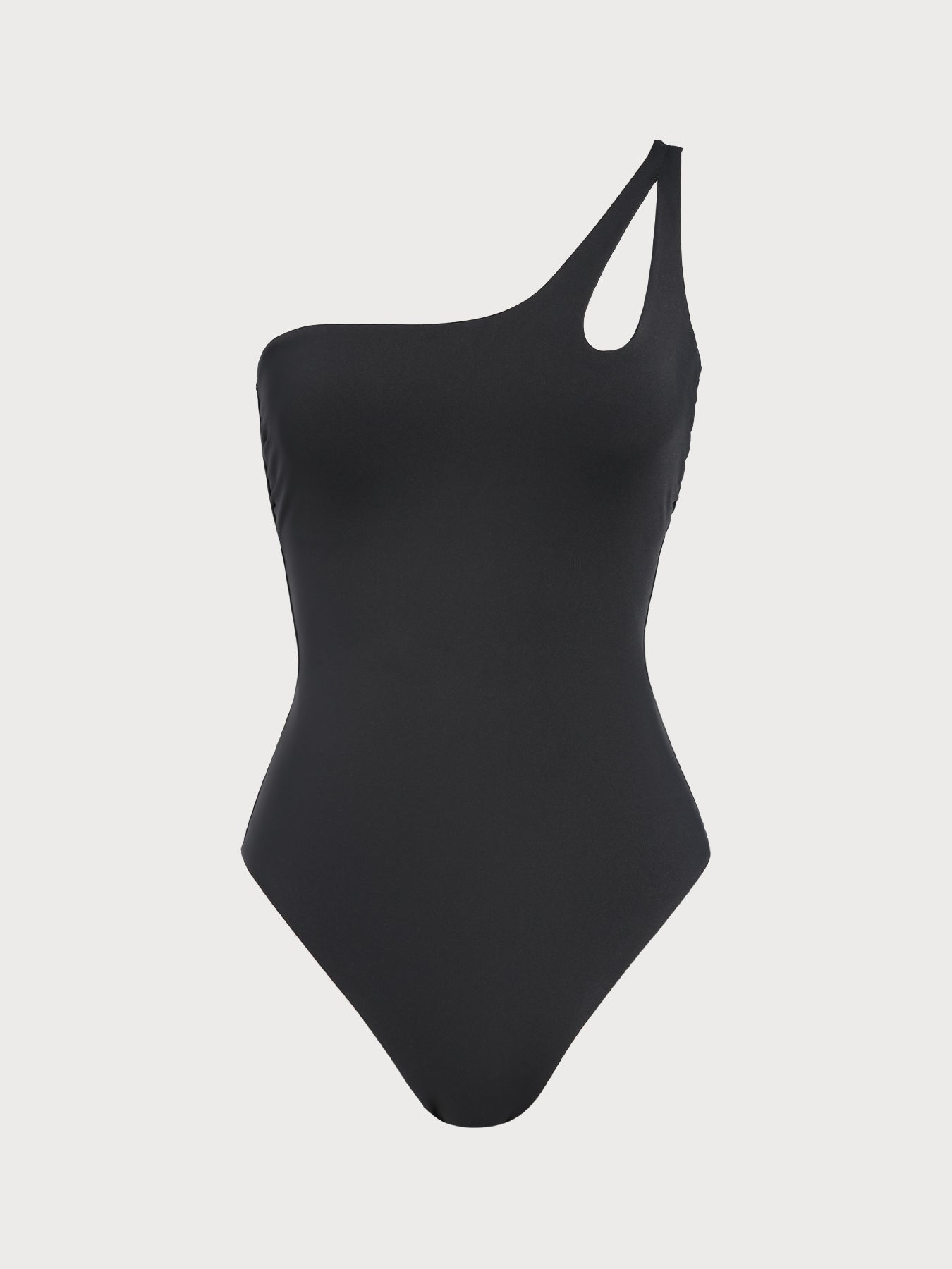 This One-Shoulder Cutout tummy Control One-Piece Swimsuit offers gentle tummy control for a smooth, flattering silhouette, enhancing curves for a confident, elegant look perfect for any beach day.