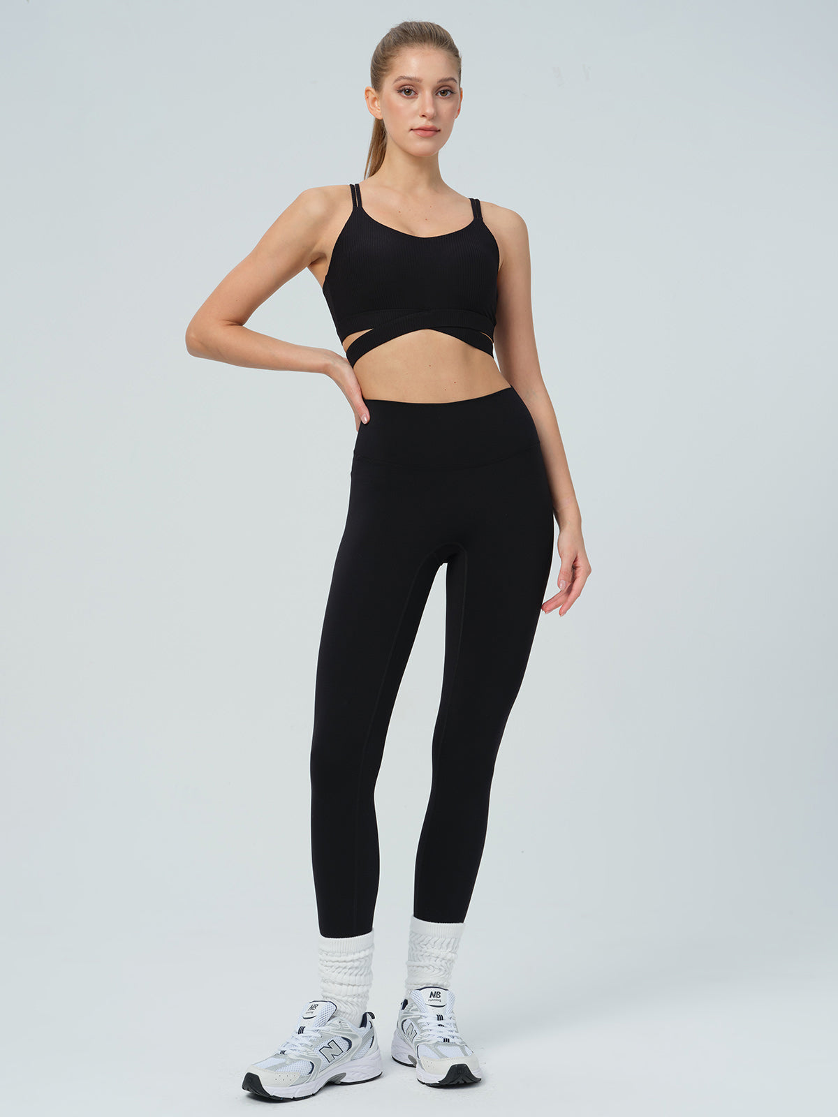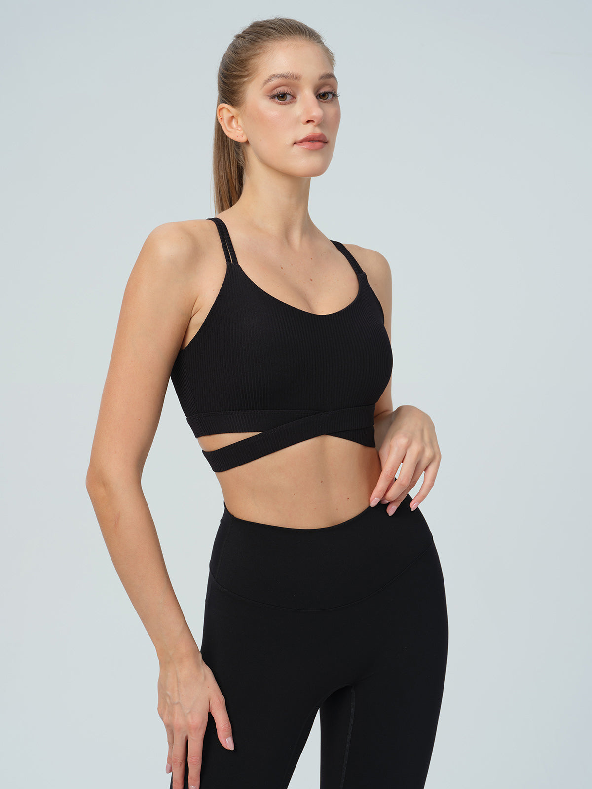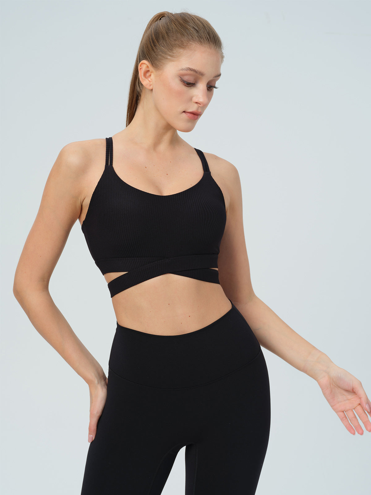 Black Ribbed Cross Strap Sports Cami