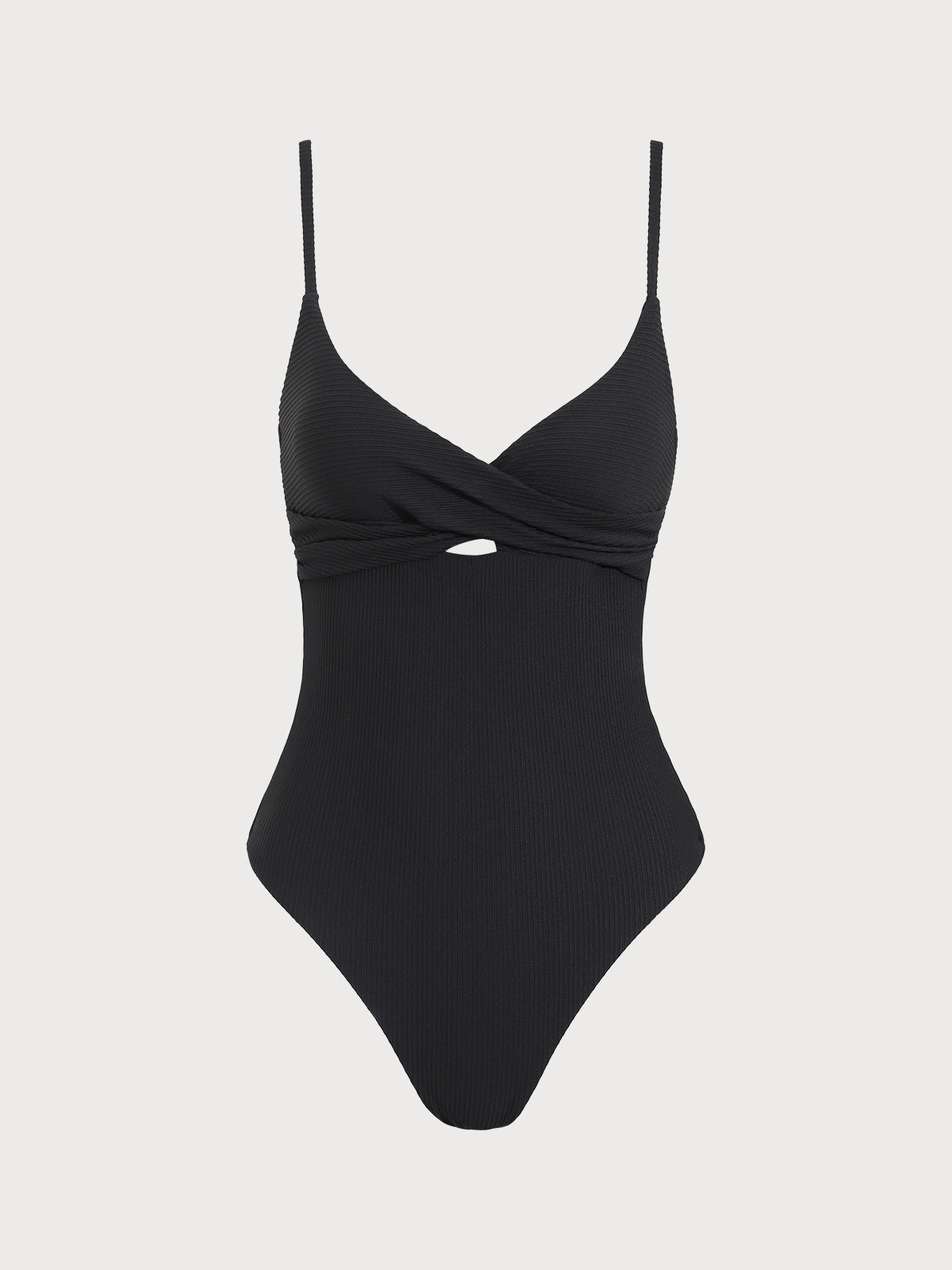 Black Ribbed Twist Knot One-Piece Swimsuit