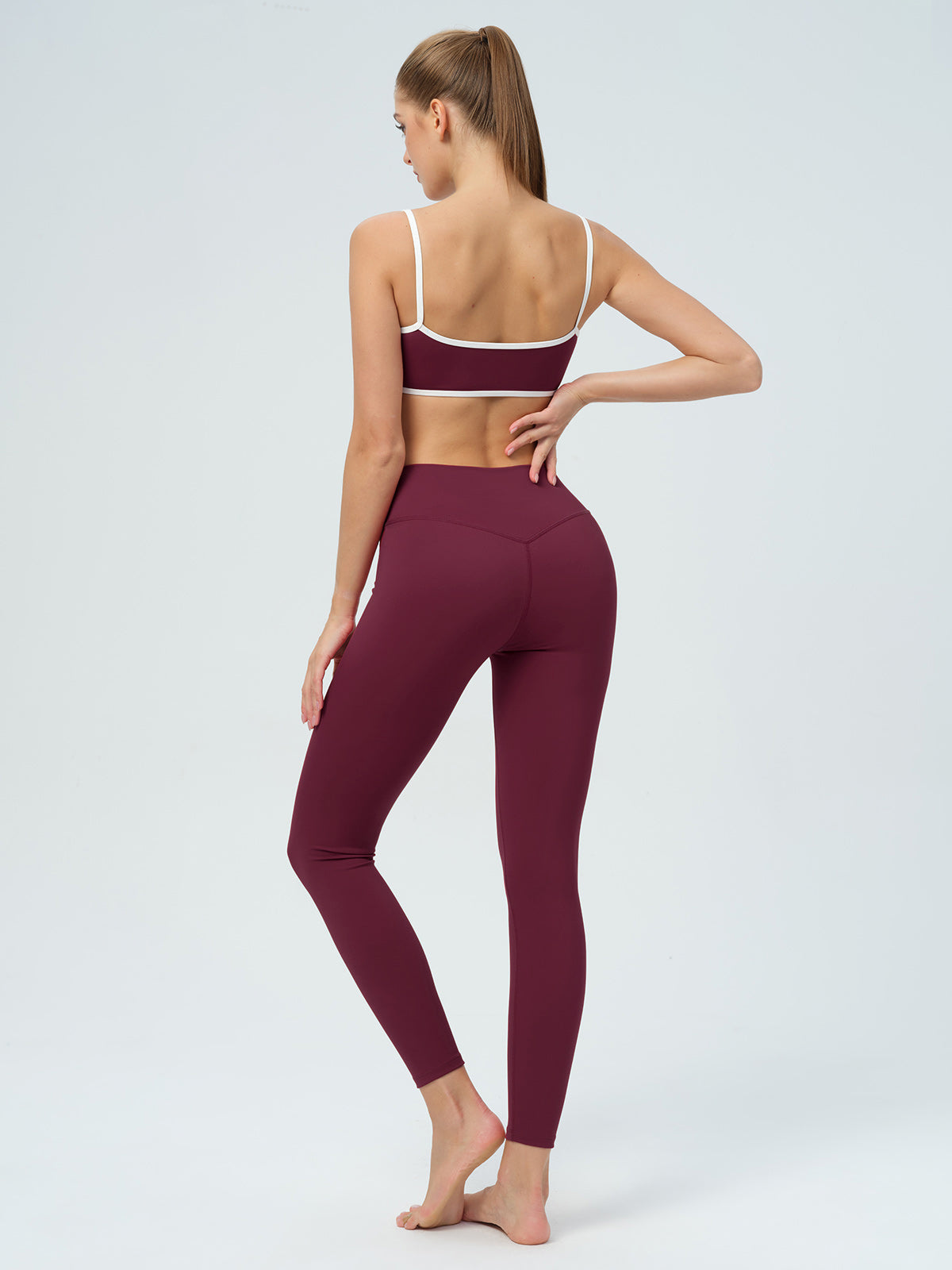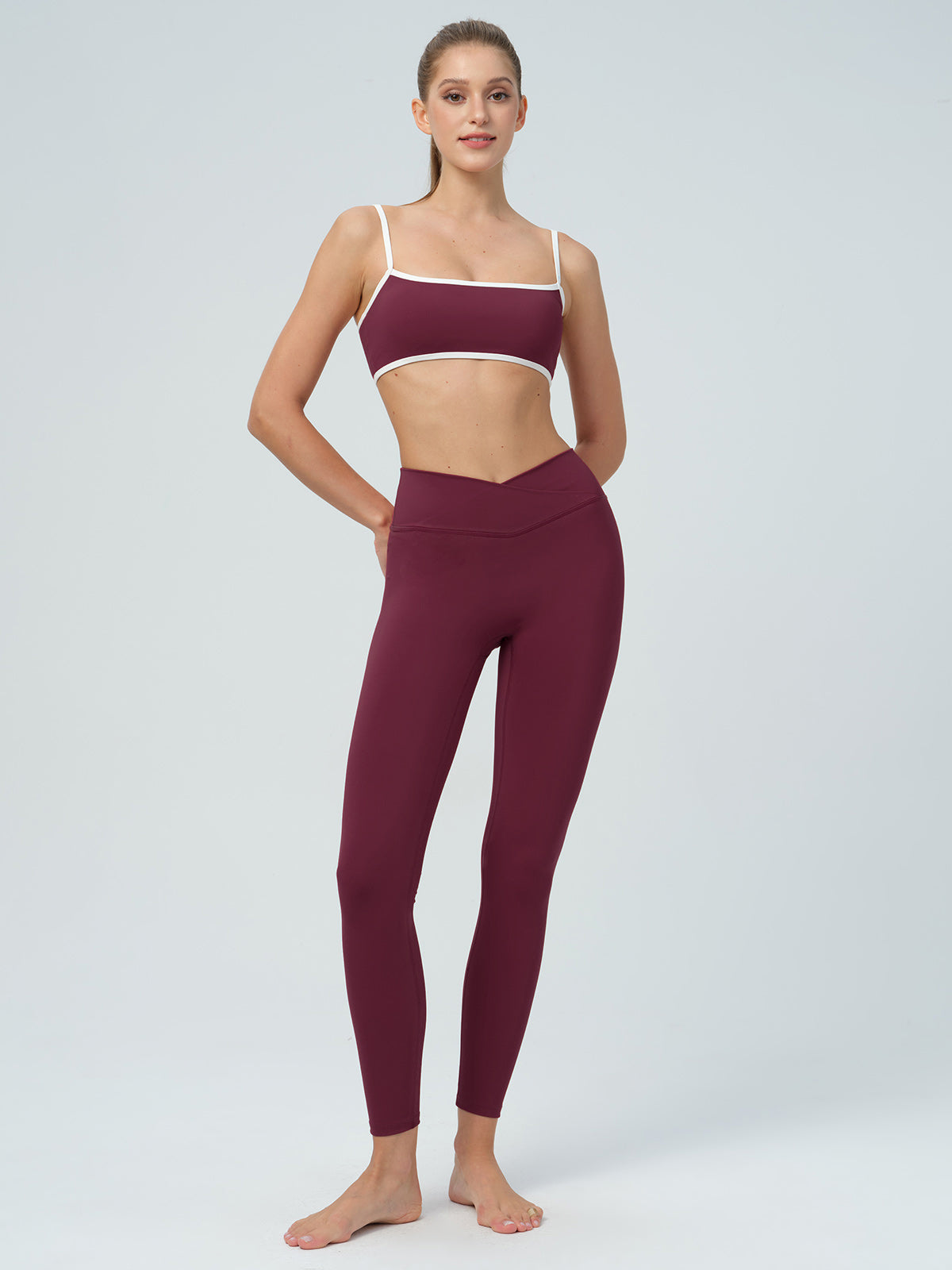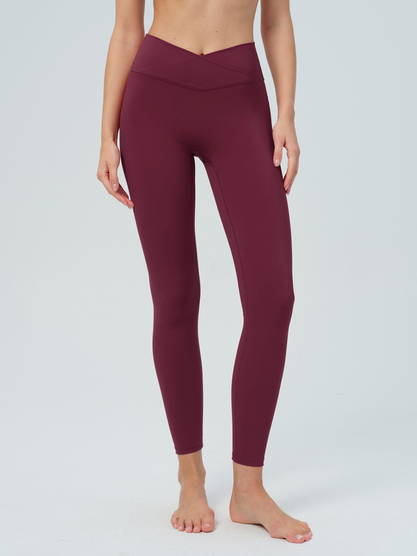 The Burgundy Cross-Waist Leggings 28" features GRS-certified recycled polyamide and spandex. By using these recycled materials, we lessen our impact on natural resources and minimize energy and chemical use, all while delivering top-notch performance and durability.