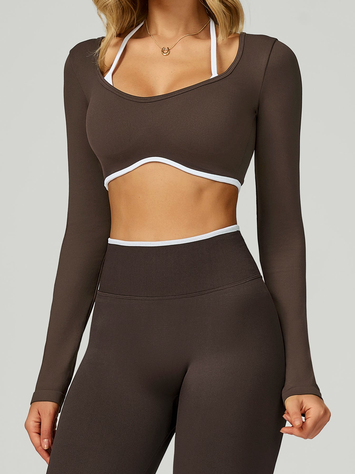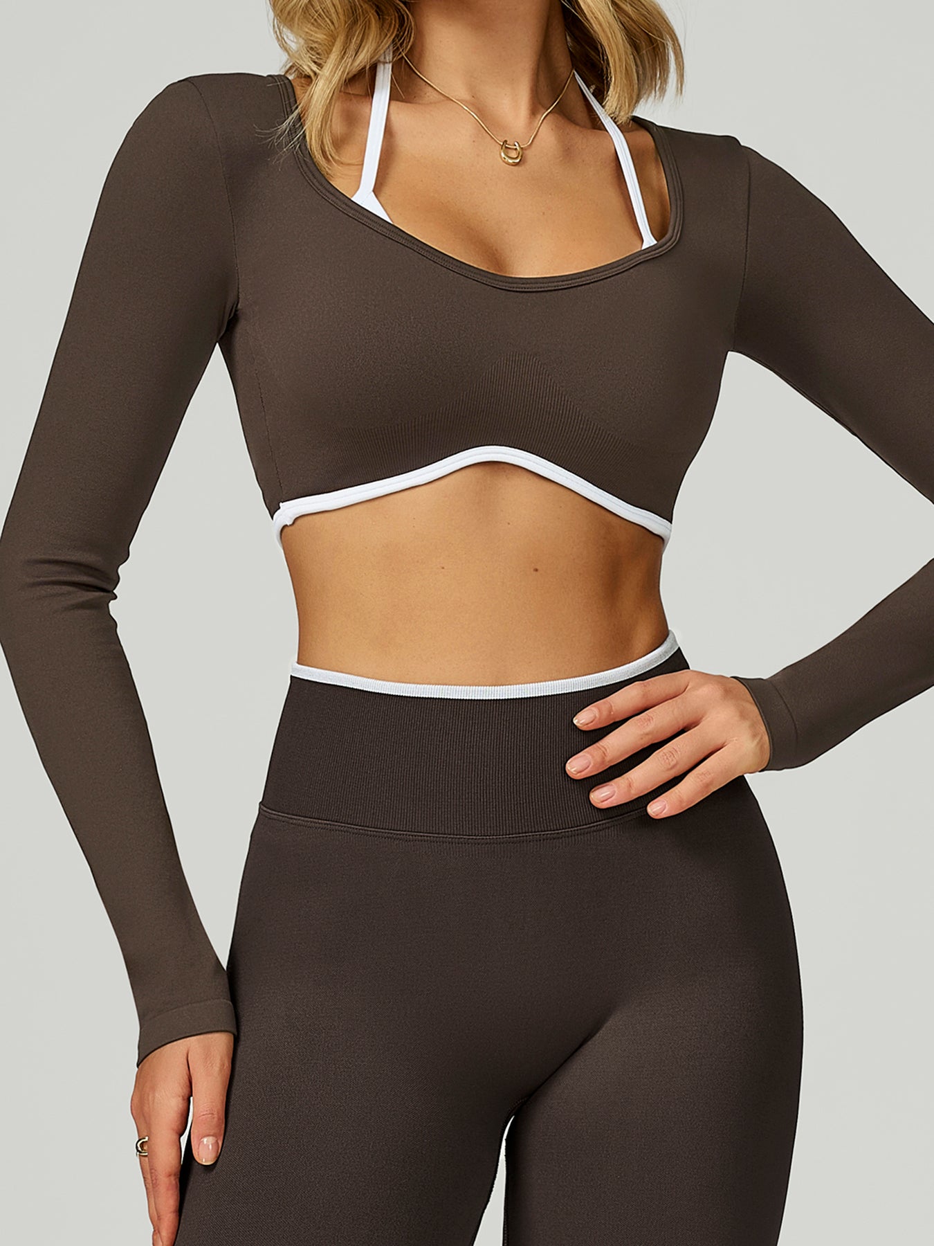 Chocolate Brown Crop Long Sleeve Top - Light Support
