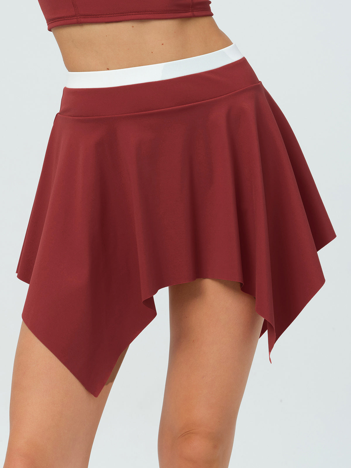 Dark Red Asymmetric Hem Tennis Skirt
