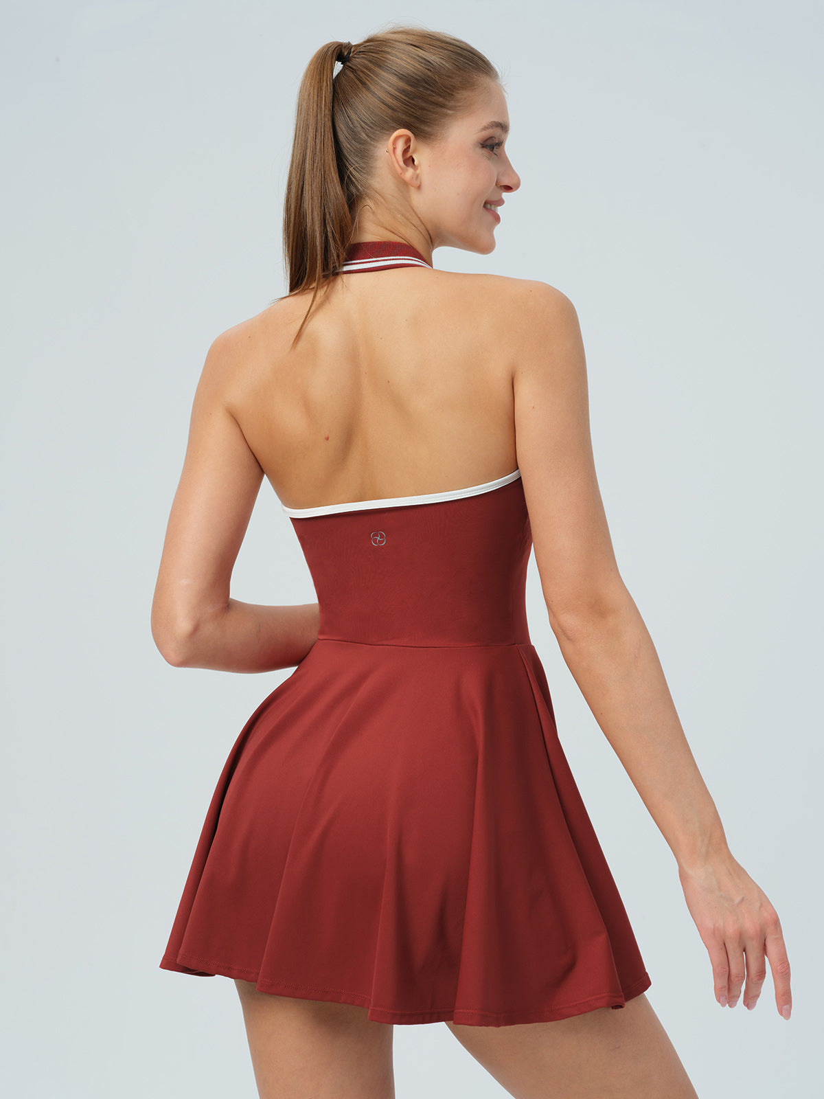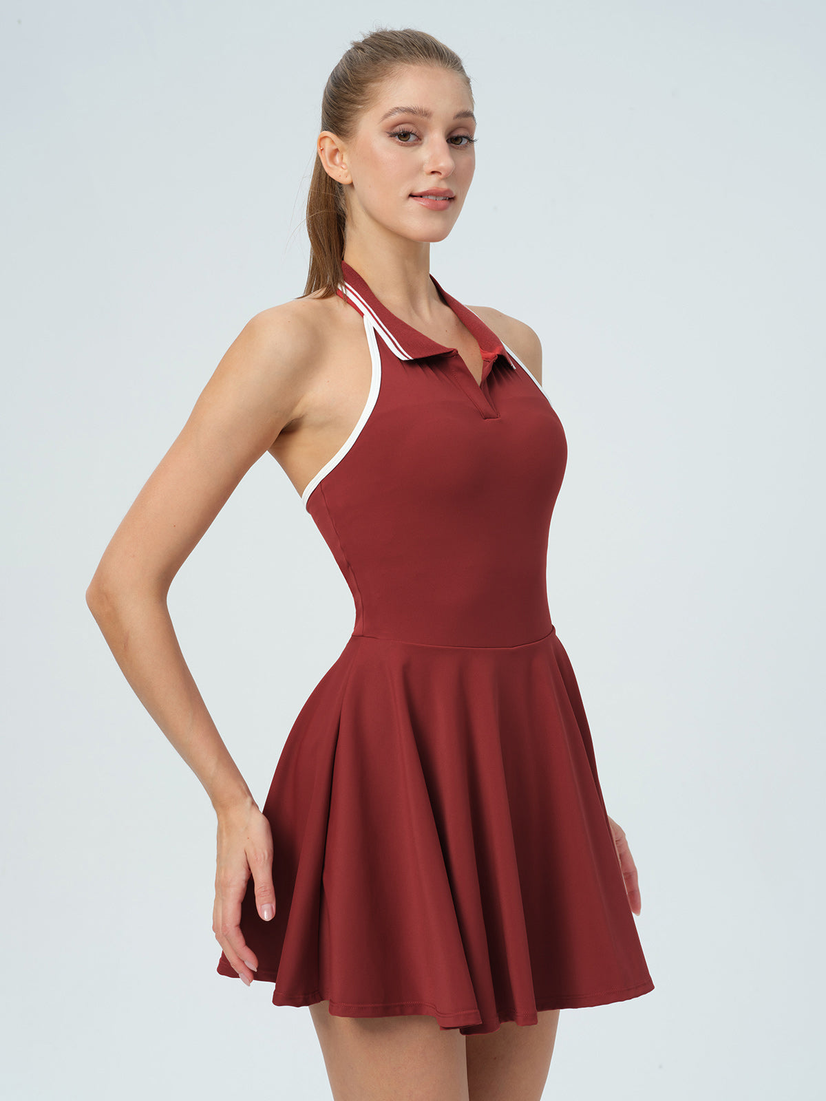 The Dark Red Collar Backless Tennis Dress is a stylish and sporty piece designed for both performance and fashion. Featuring a classic collared neckline and a daring backless design, this dress offers a unique blend of sophistication and athleticism. The lightweight, breathable fabric ensures comfort during play, while the sleek silhouette enhances your natural shape. Perfect for the tennis court or casual outings, this dress is a standout choice for those who value both functionality and flair.