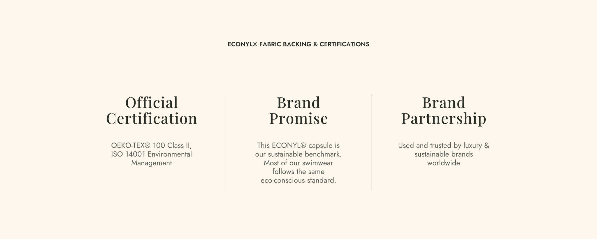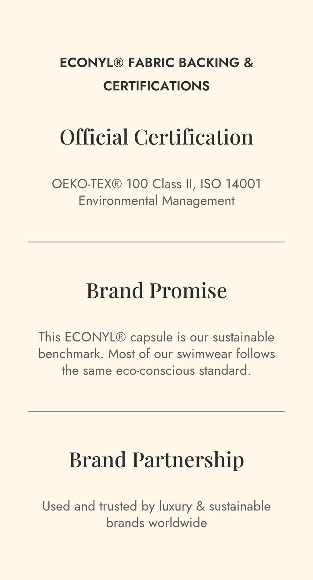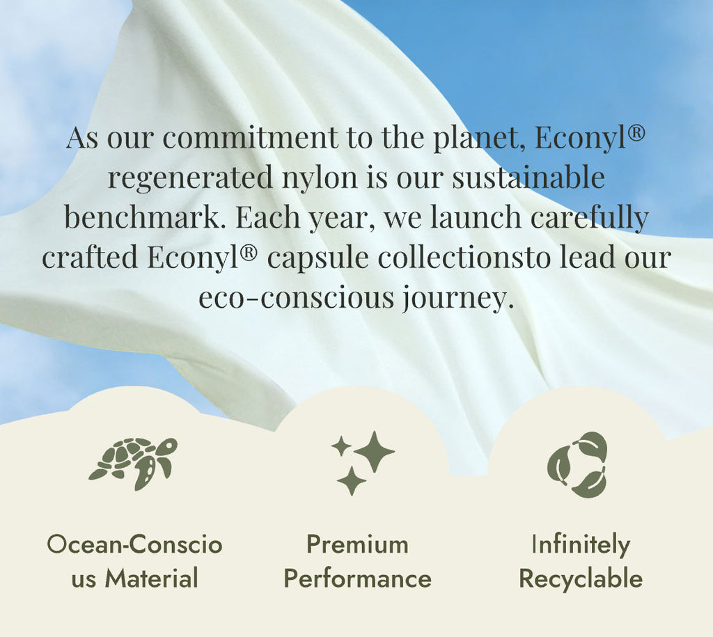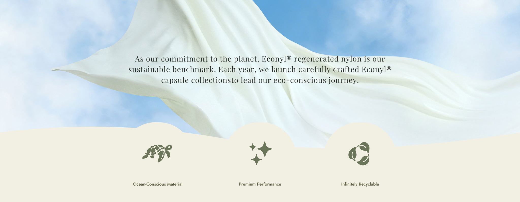 Berlook's latest sustainable collection is made with ECONYL® fiber, a 100% regenerated yarn from nylon waste otherwise polluting the Earth. This material not only upholds high standards but also ensures garments are of superior quality and performance while remaining eco-friendly.