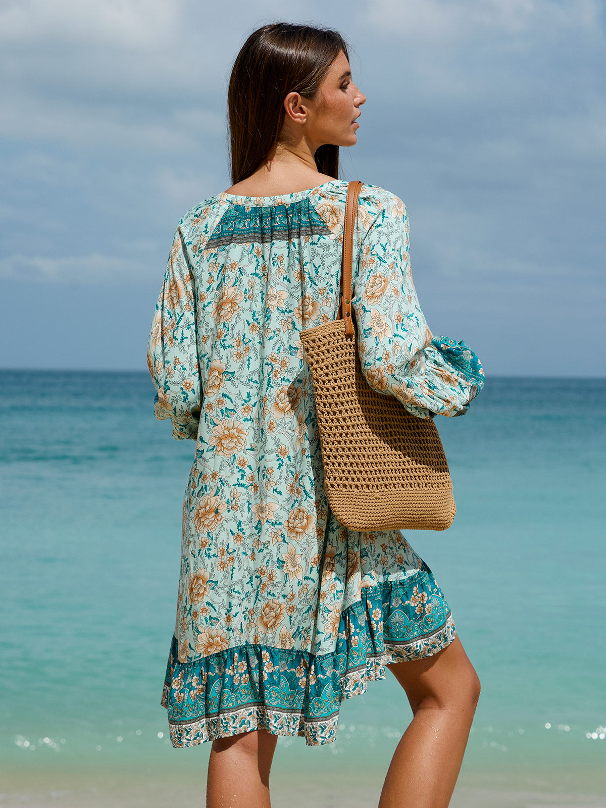 Floral Print Raglan Sleeve Beach Dress