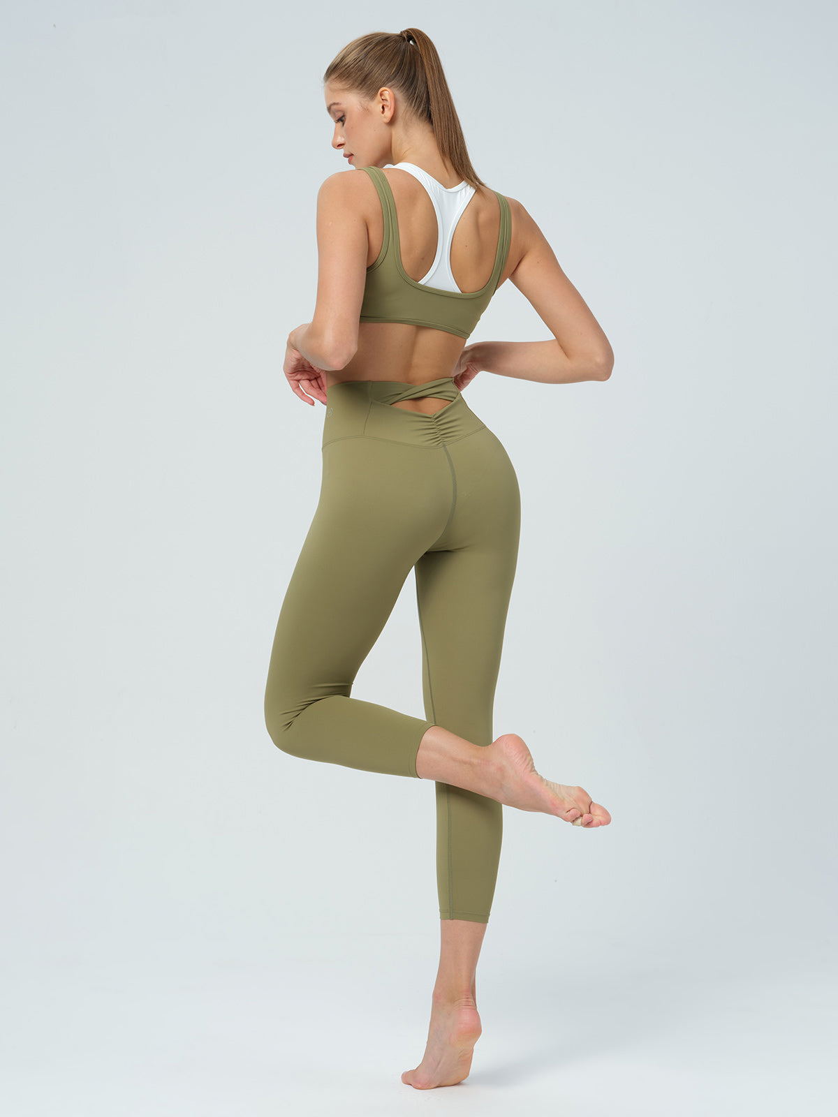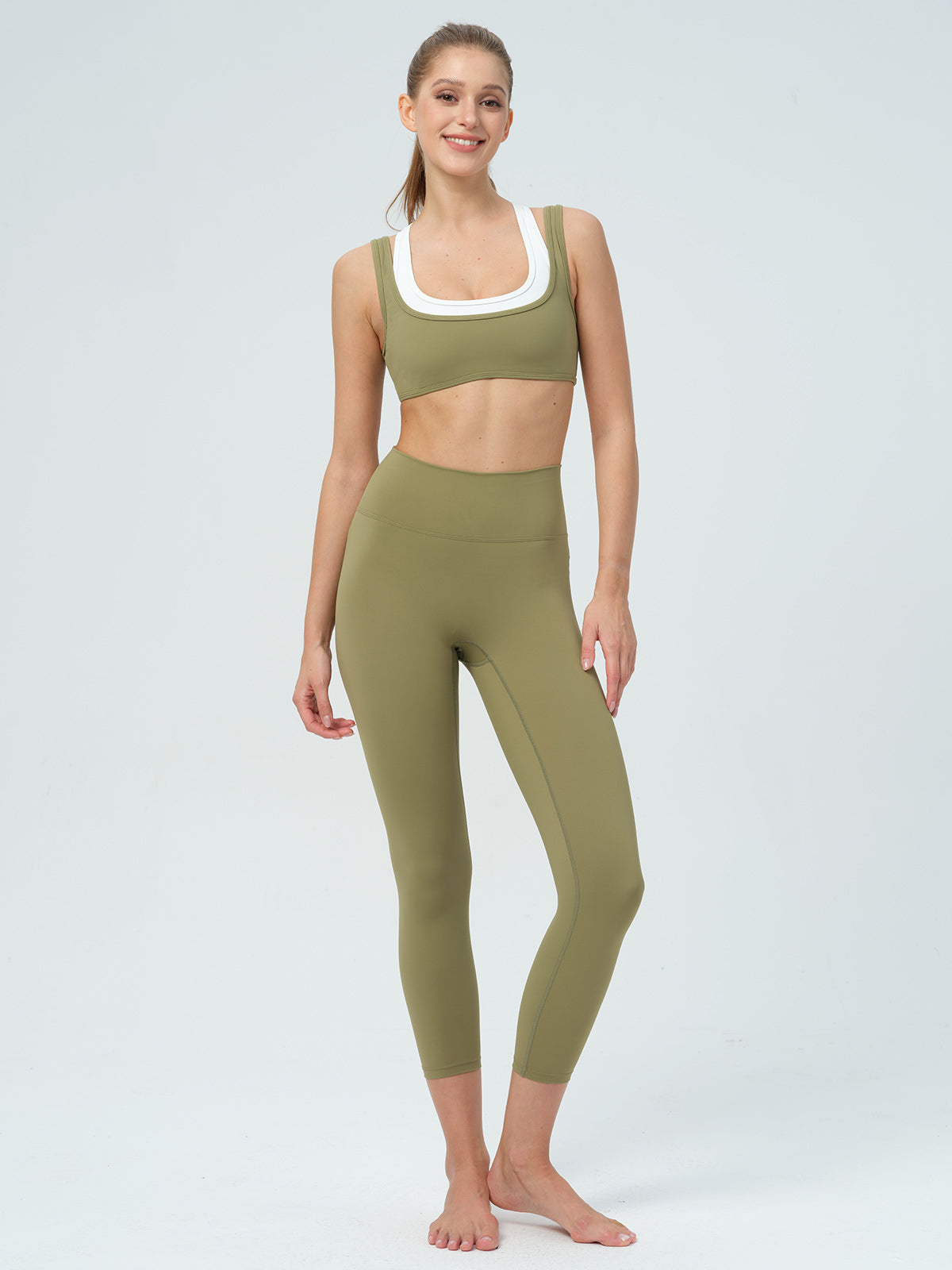 Green Contrast U Neck Sports Bra - Light Support