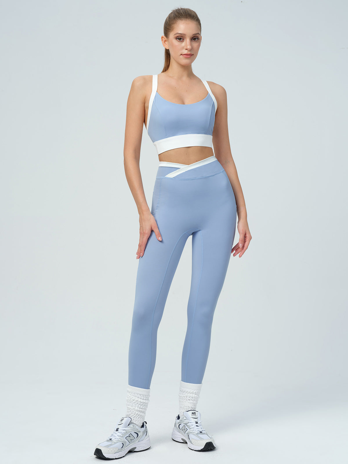 Light Blue Contrast U Neck Sports Bra - Light Support