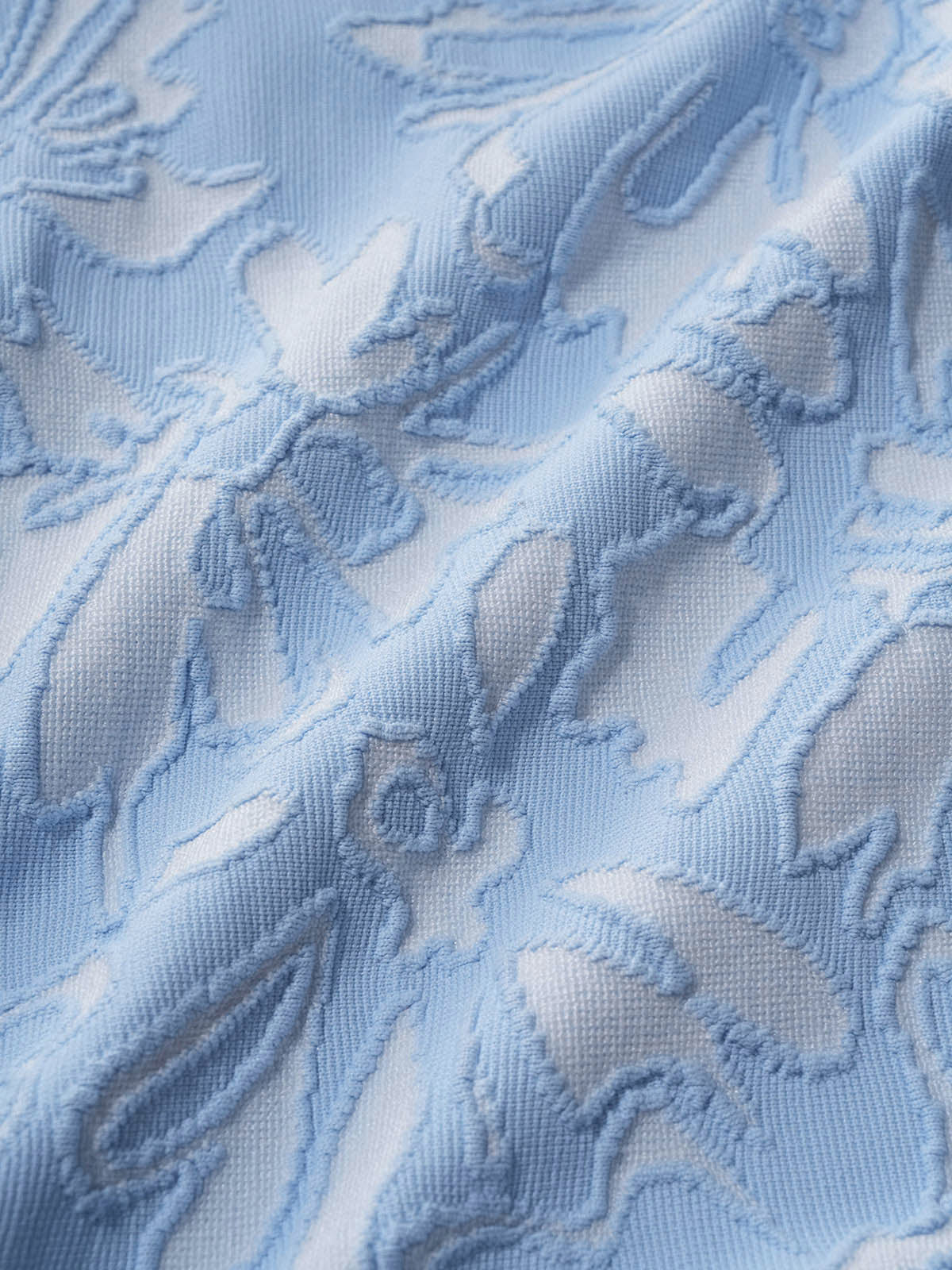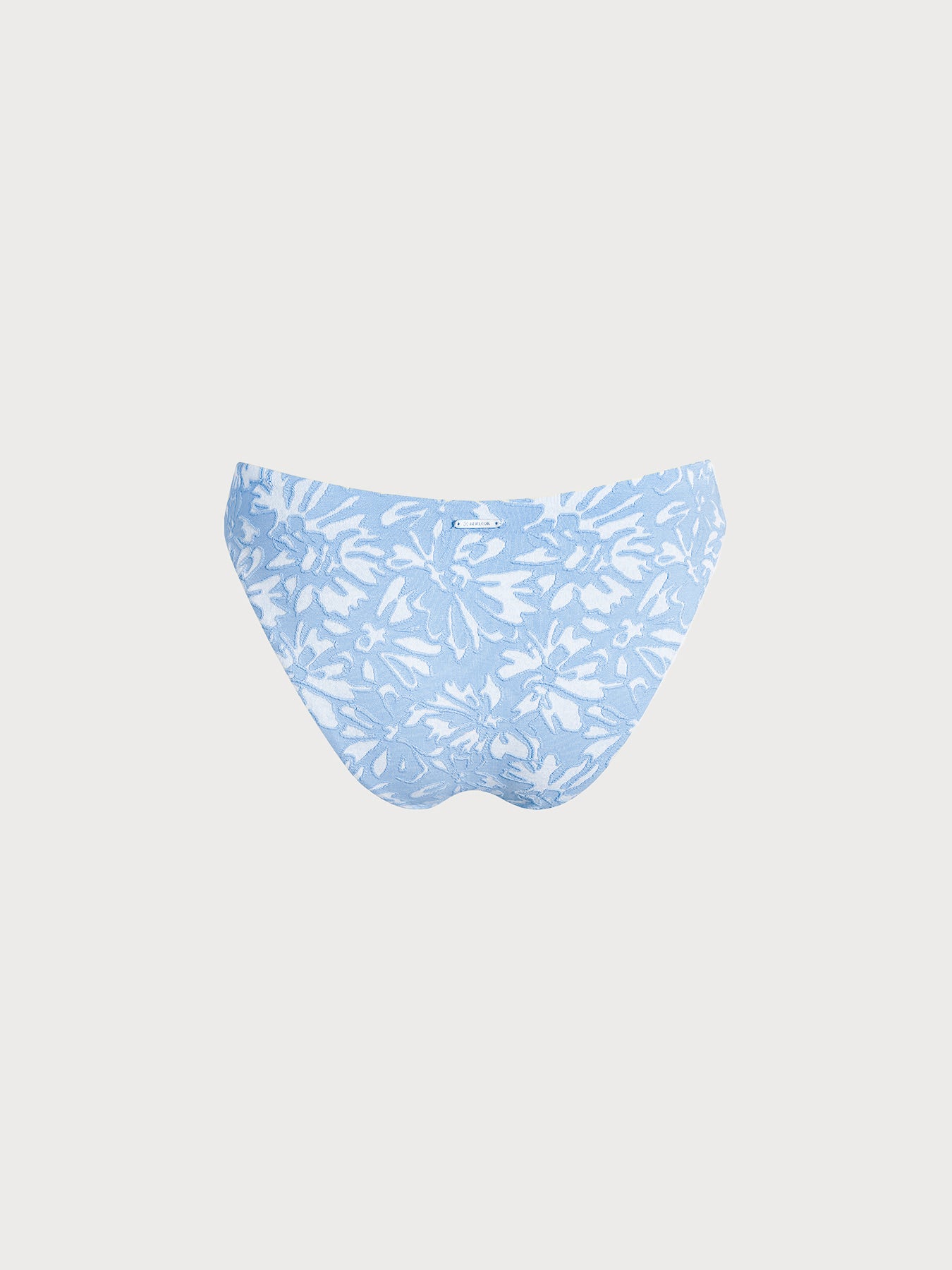 Light Blue Floral Textured O-Ring Bikini Bottom