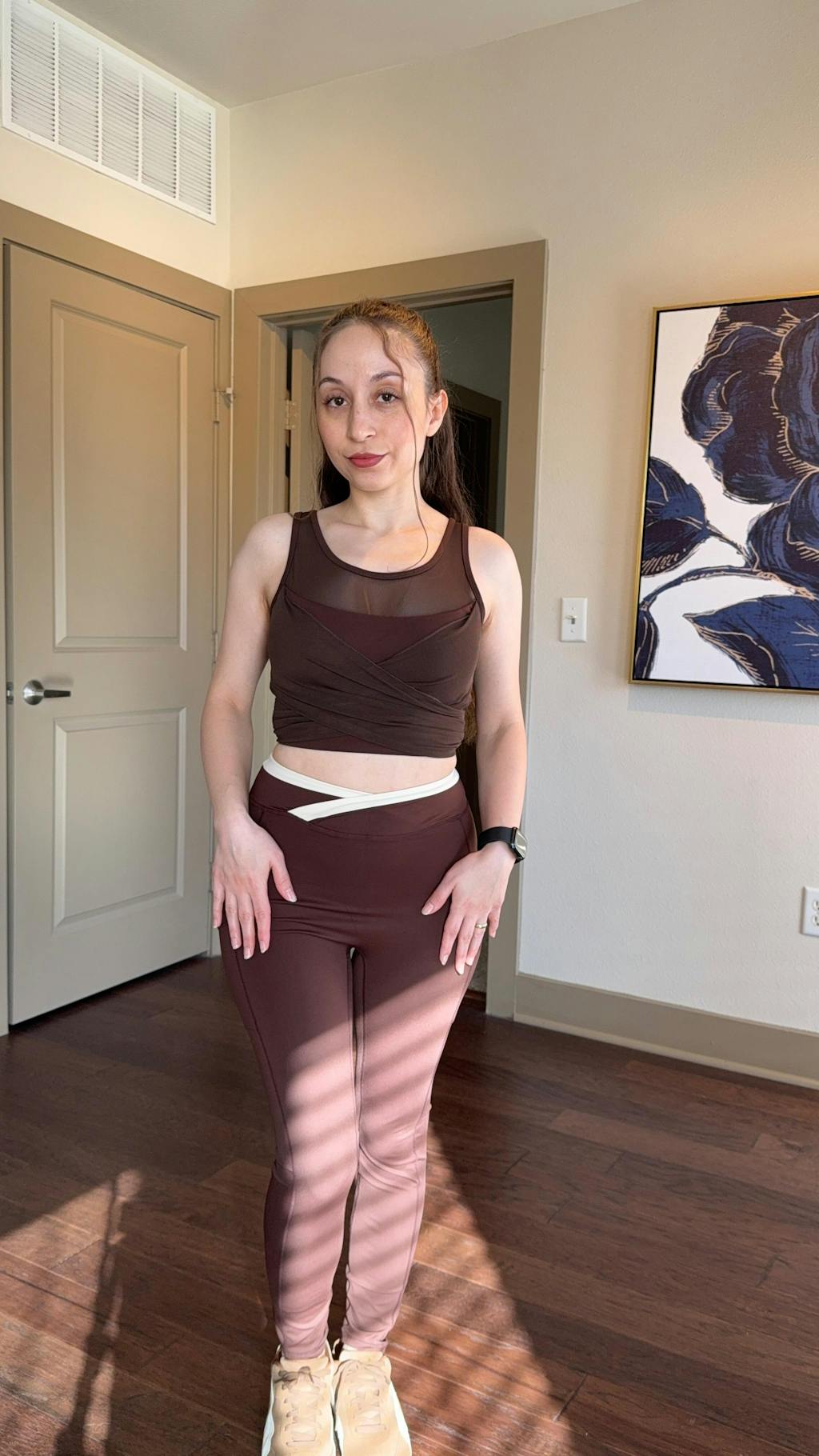 The mesh detail makes it look so airy and feminine. Perfect for yoga or a light Pilates class — I even wear it with jeans for brunch after!