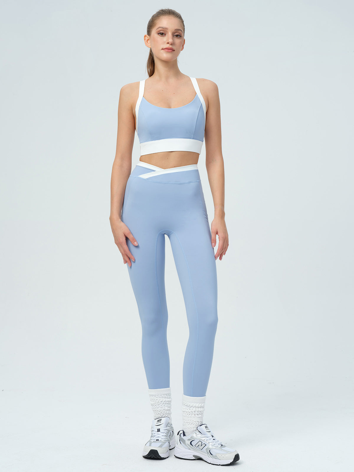 Matched these with the U-neck bra and loved the full set. The waistband stays in place during stretches, and they’re comfy enough to wear straight to brunch after yoga.
