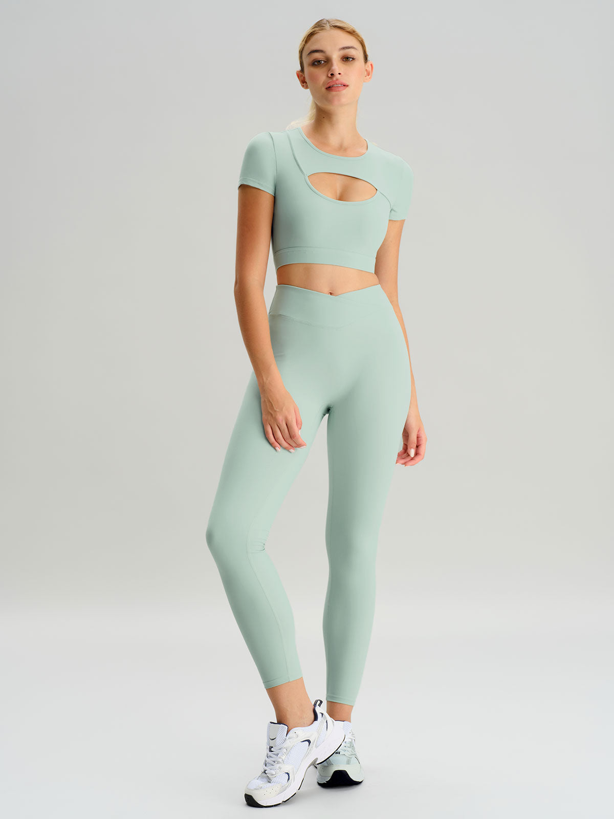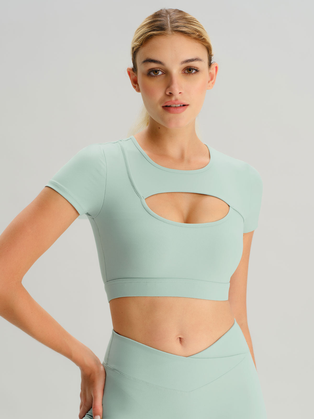 Light Green Cutout Short Sleeve Top - Light Support