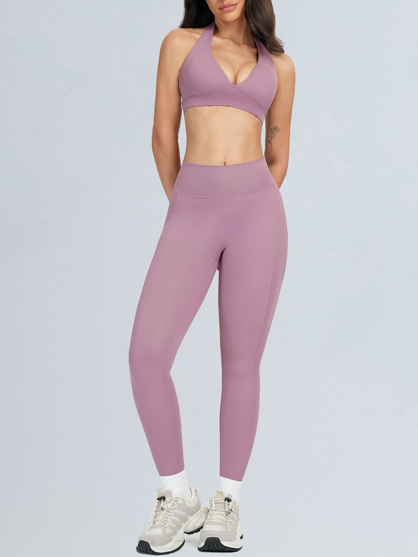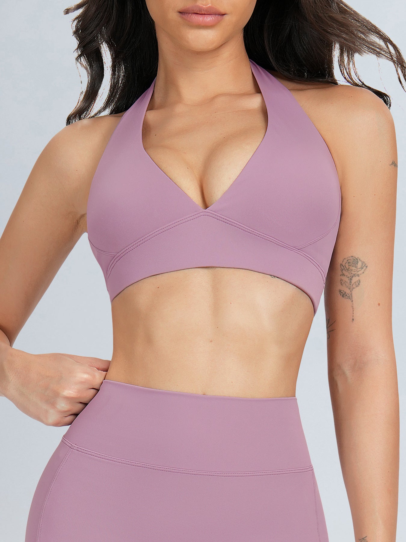 Light Purple Halter V Neck Sports Bra