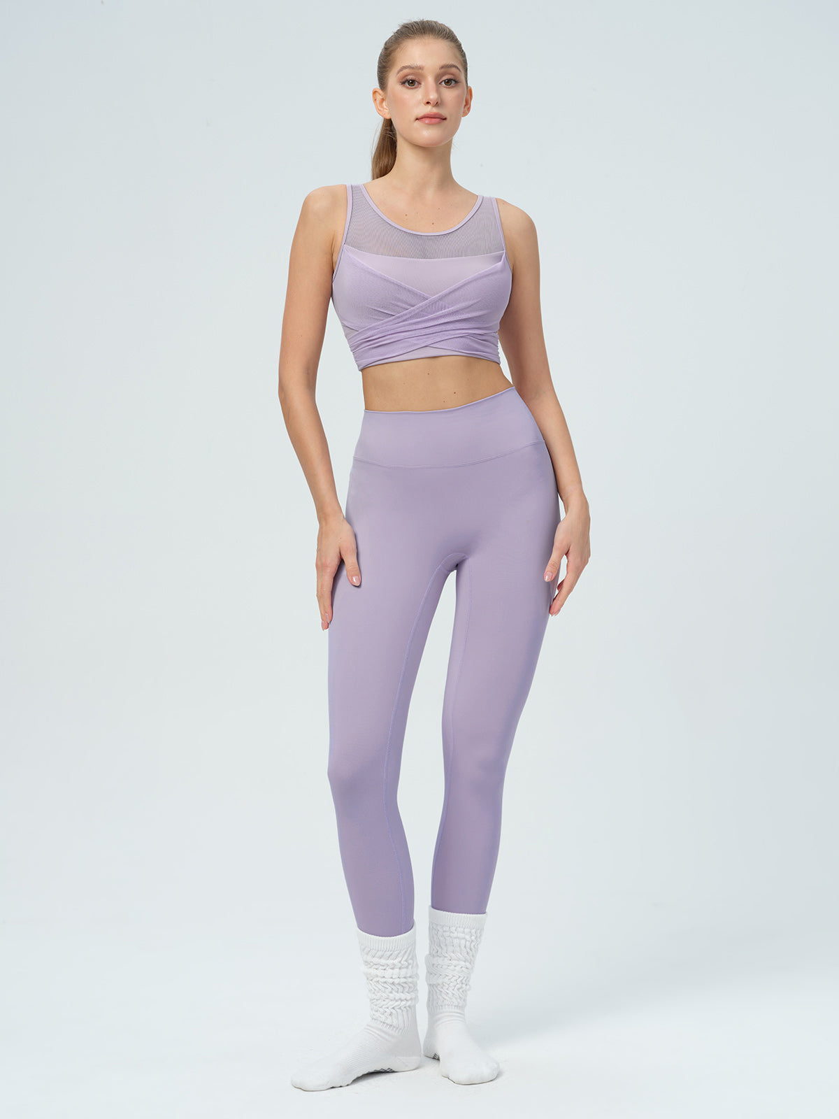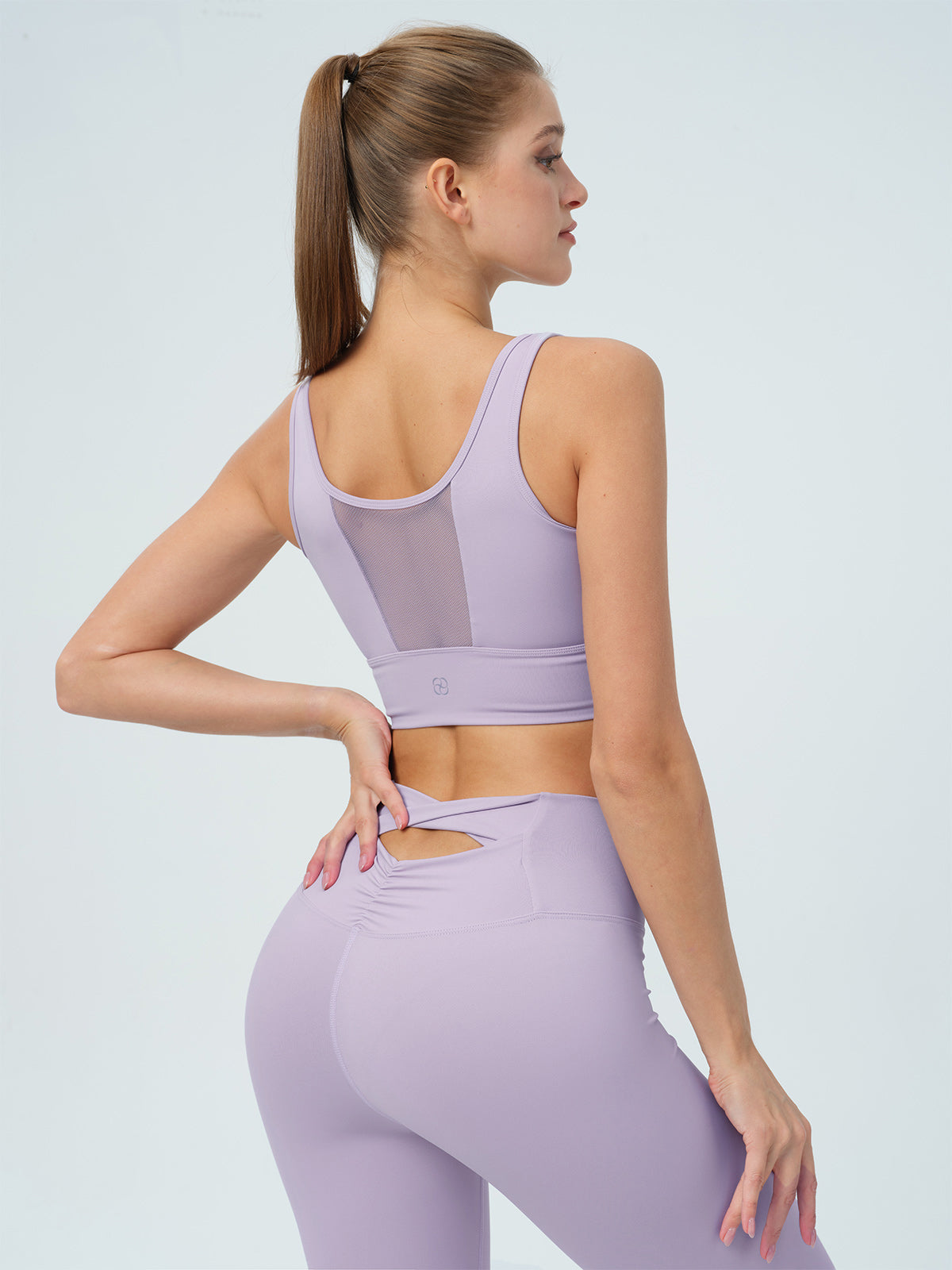 Light Purple Mesh Cross-Front Tank Top - Light Support