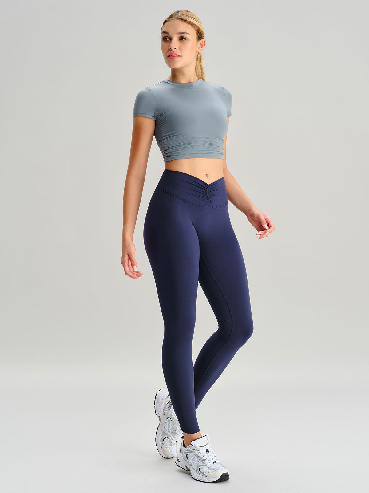 Navy Ruched Leggings 25"