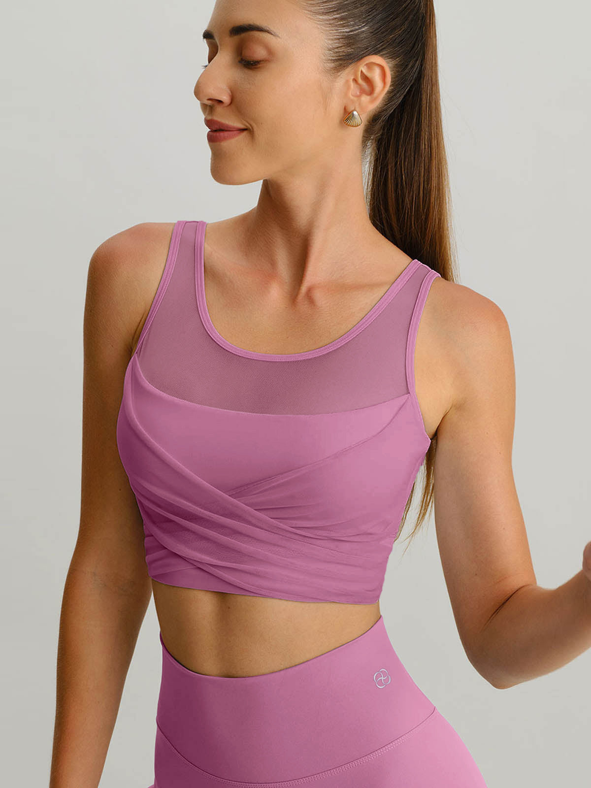 Pink Mesh Cross-Front Tank Top - Light Support