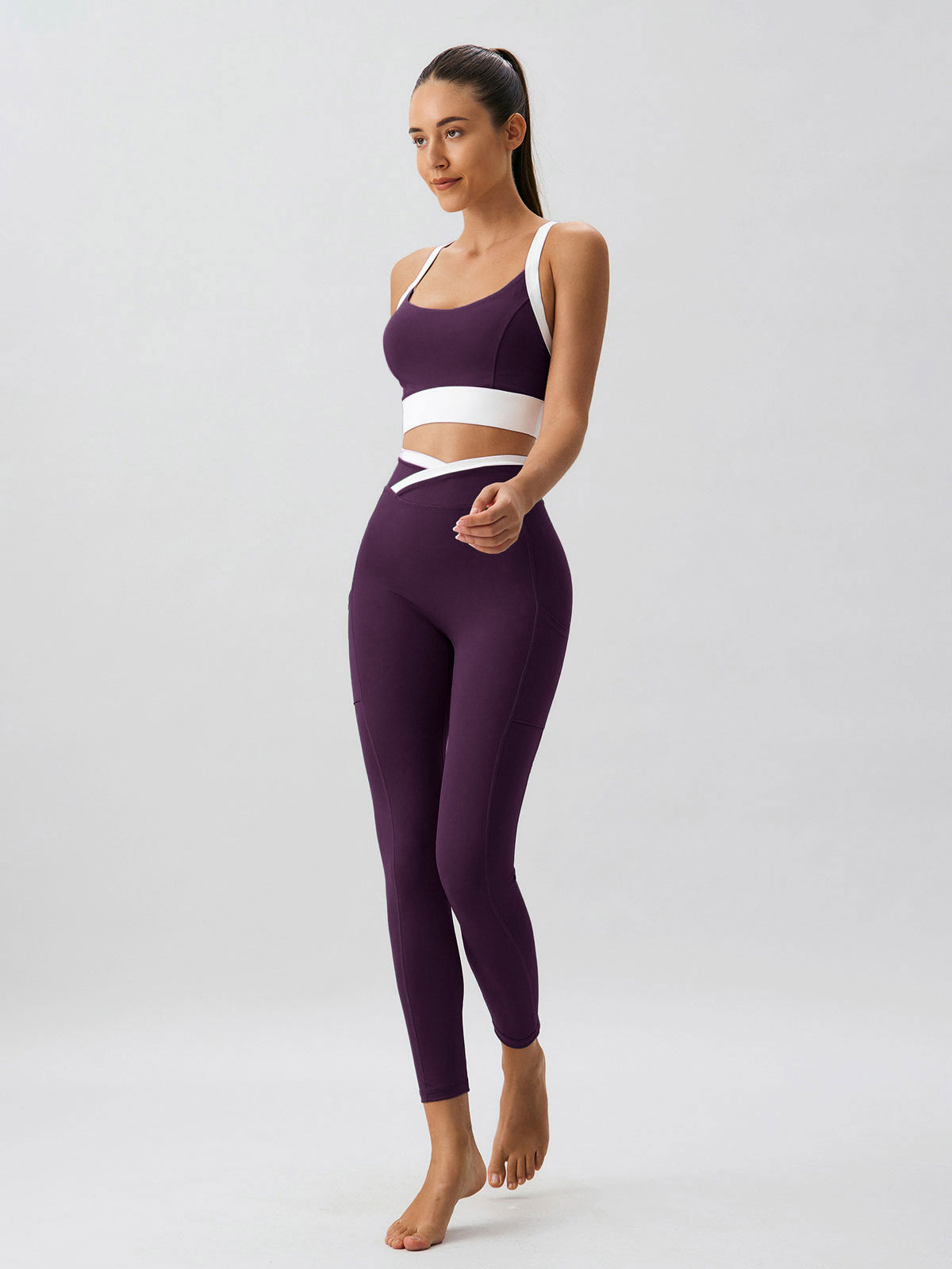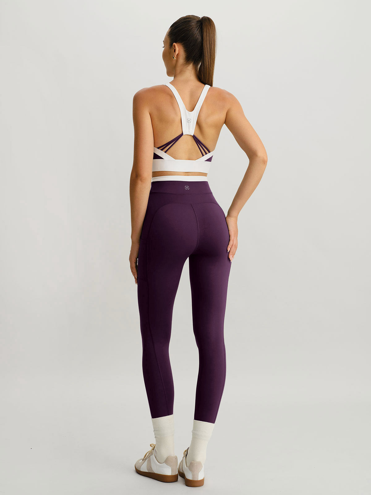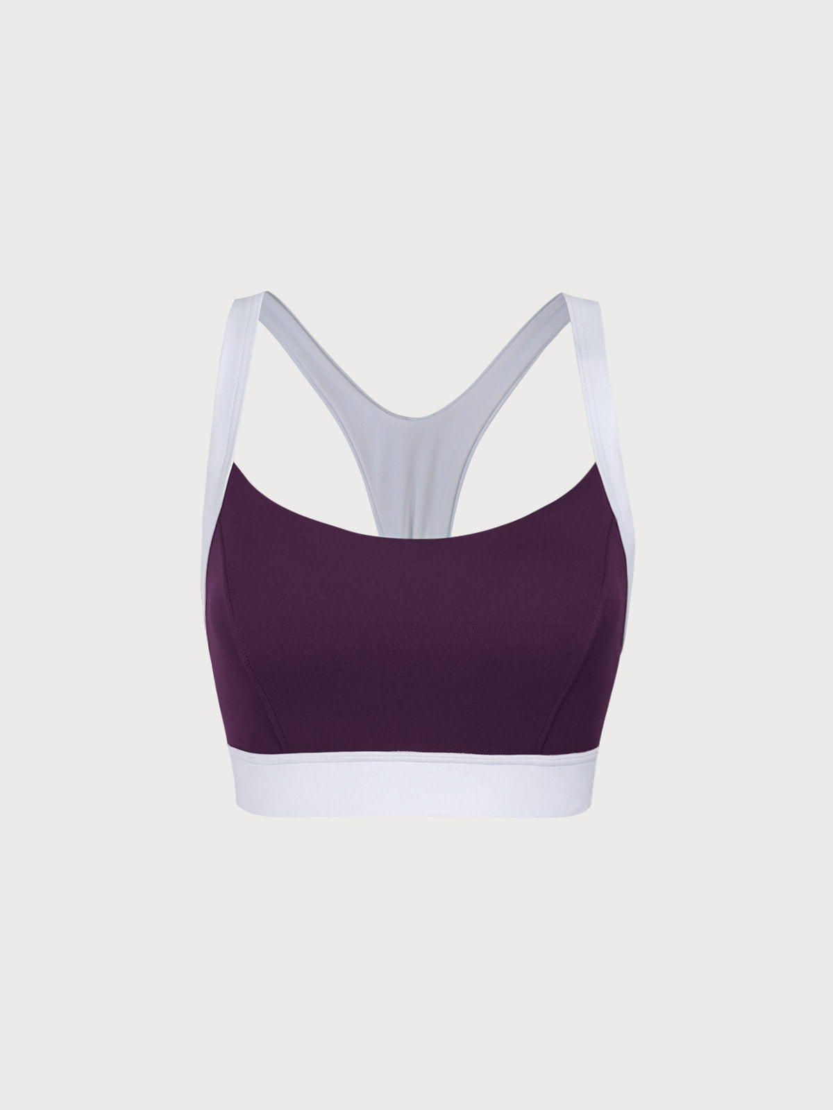 The Purple Contrast U Neck Sports Bra features GRS-certified recycled polyamide and spandex. By using these recycled materials, we lessen our impact on natural resources and minimize energy and chemical use, all while delivering top-notch performance and durability.