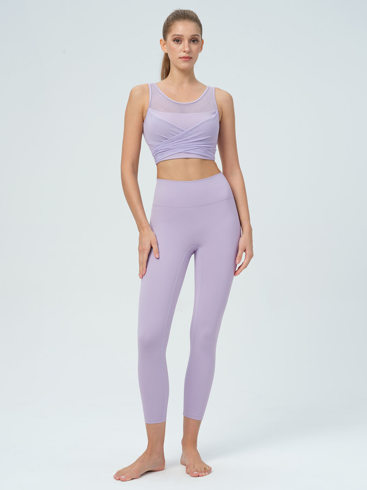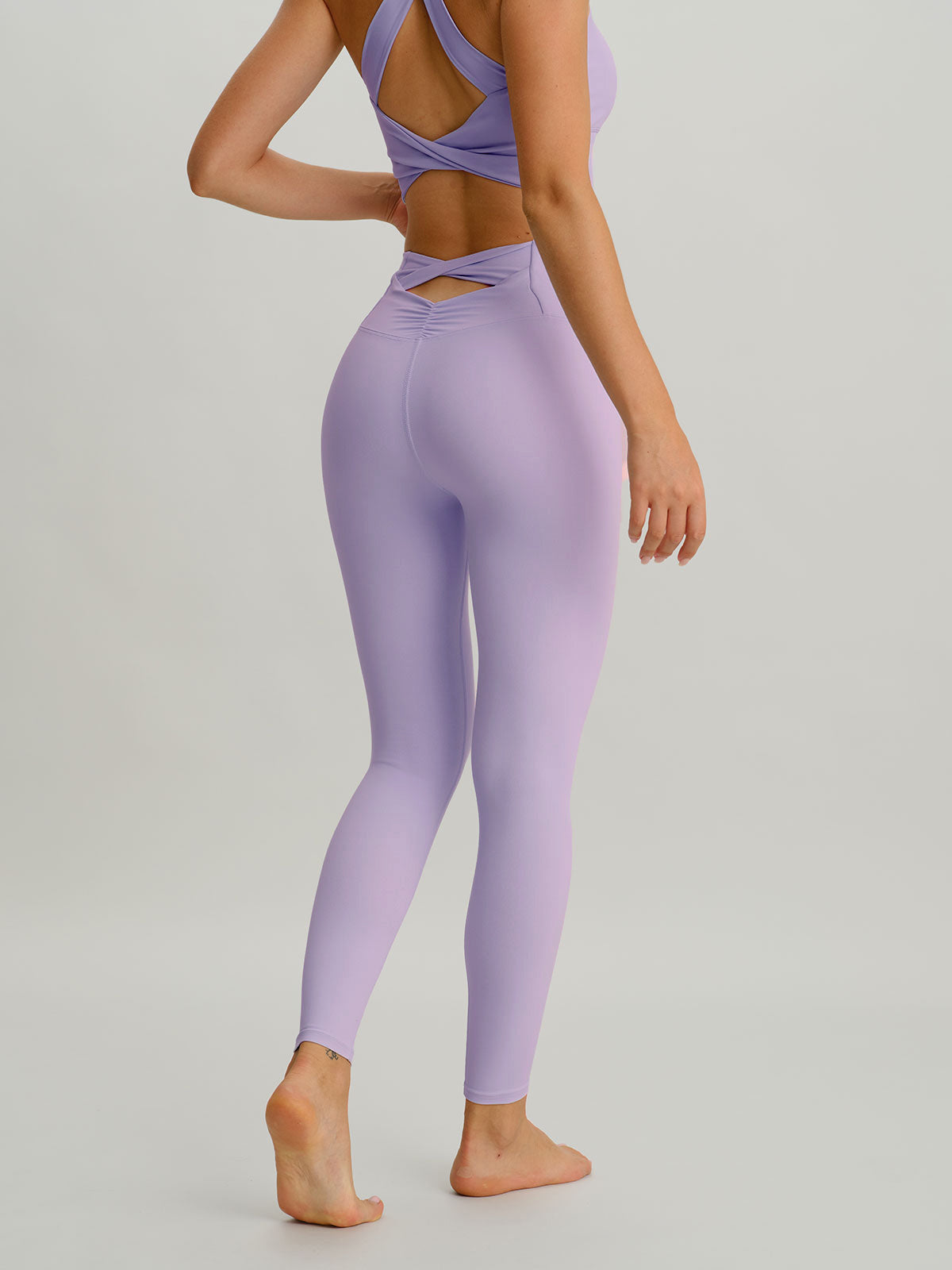 The Light Purple Cut Out Leggings 24" combine style and performance, with a sleek cut-out design and flattering high waist. Available in inclusive sizes, these leggings are wear-tested for the perfect fit. The breathable, moisture-wicking fabric offers comfort during workouts, lounging, or running errands. The 24" length provides a versatile, streamlined silhouette.