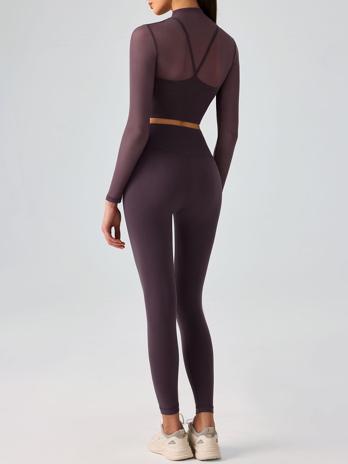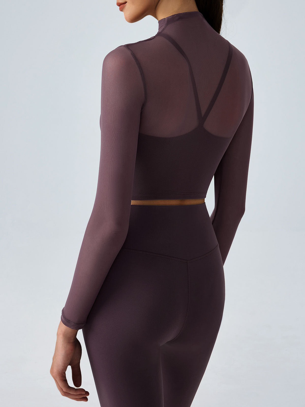Purple Mesh Cutout Long Sleeve Top--Light Support